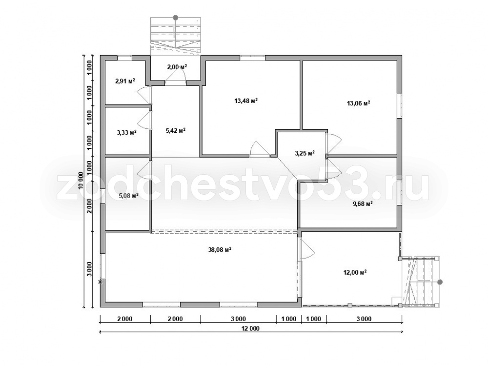Высота фронтона Одноэтажный дом 2,0 м. Двухэтажный дом 3,50 м.