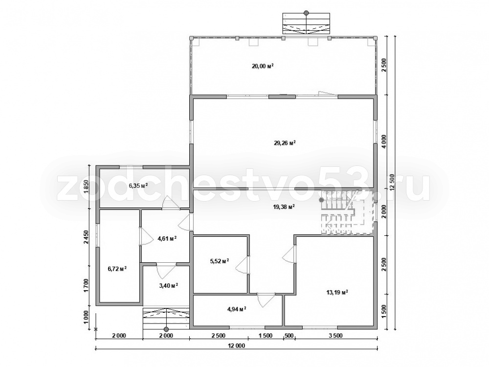 Высота фронтона Одноэтажный дом 2,0 м. Двухэтажный дом 3,50 м.