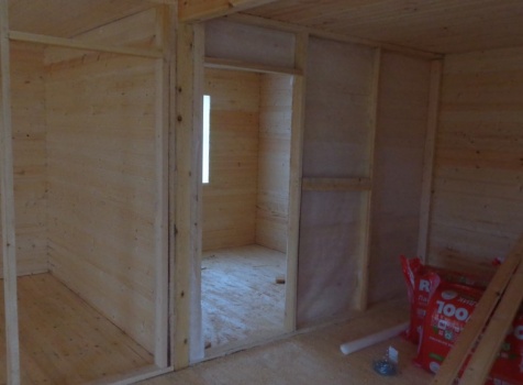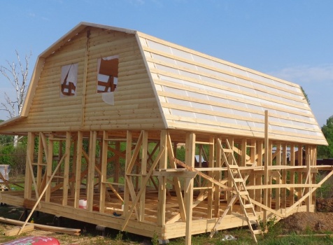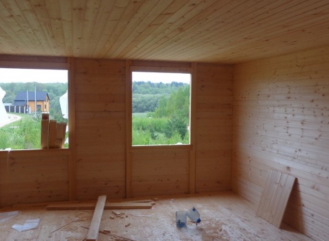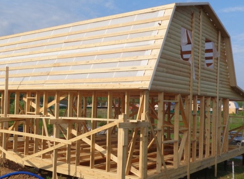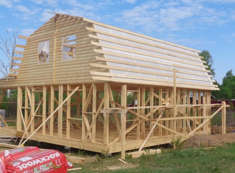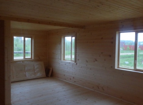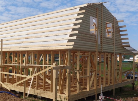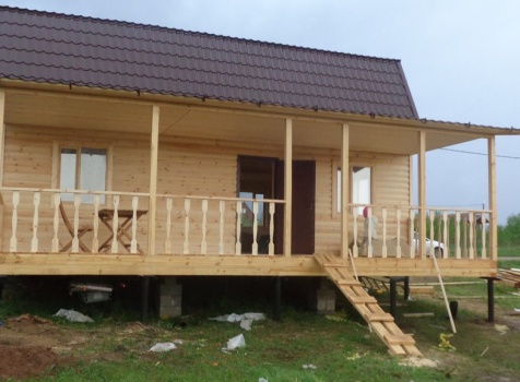 Каркасно-щитовой дом общими размерами 10,0х9,0 (дом 7,0х9,0 и терраса 3,0х9,0 под отдельной крышей). Построен в Калужской области, Тарусский район