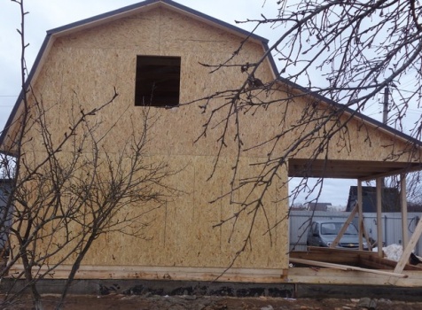Фронтоны каркасно-щитовые высотой 3.0м, снаружи обшиты OSB c утеплением в 150мм (Изовер) с проложкой парогидроизоляции в два слоя.