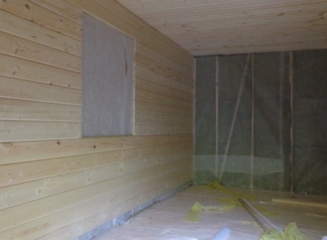 Перегородки первого этажа: каркасно-щитовые 40×100 без утепления обшиты с двух сторон имитацией бруса.