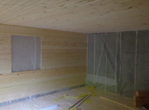 Потолки подшиты вагонкой класса «В» 16 мм с утеплением в 150 мм (Изовер) с двойной проложкой парогидроизоляции.