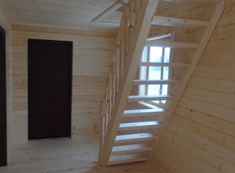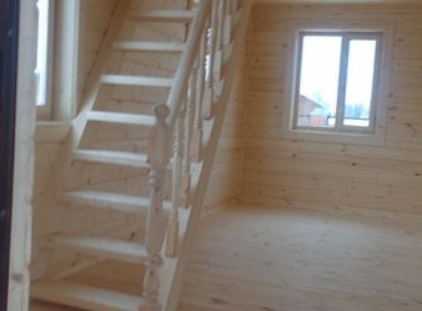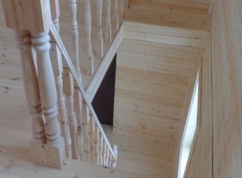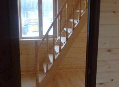 Лестница одномаршевая с точёными балясинами, cтупенями и перилами.