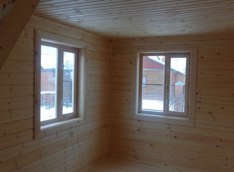 Перегородки второго этажа каркасно-щитовые, обшиты с двух сторон имитацией бруса, без утепления.