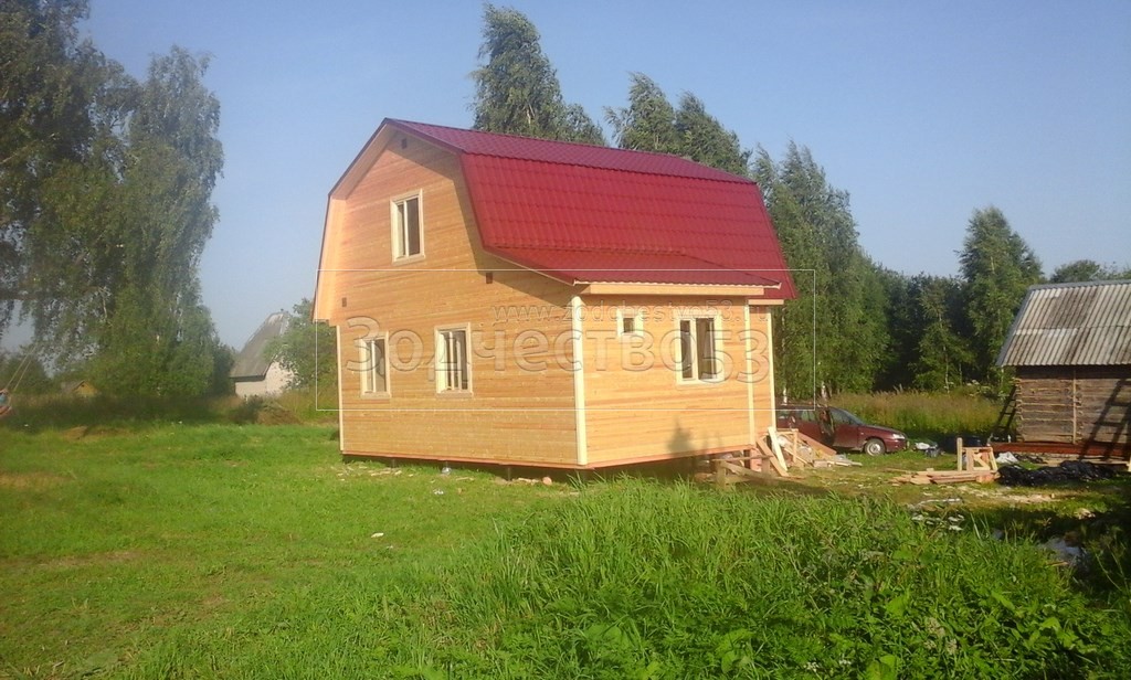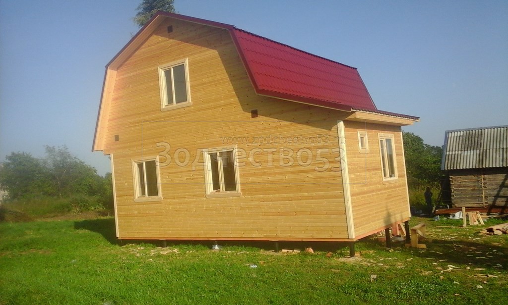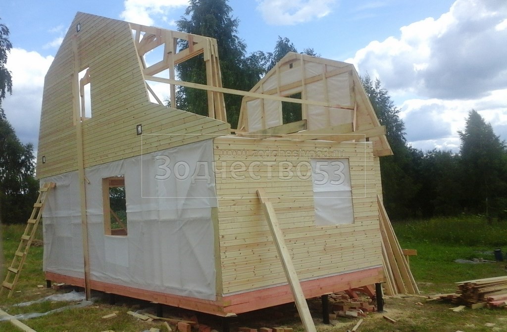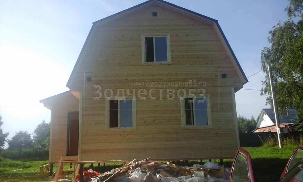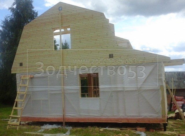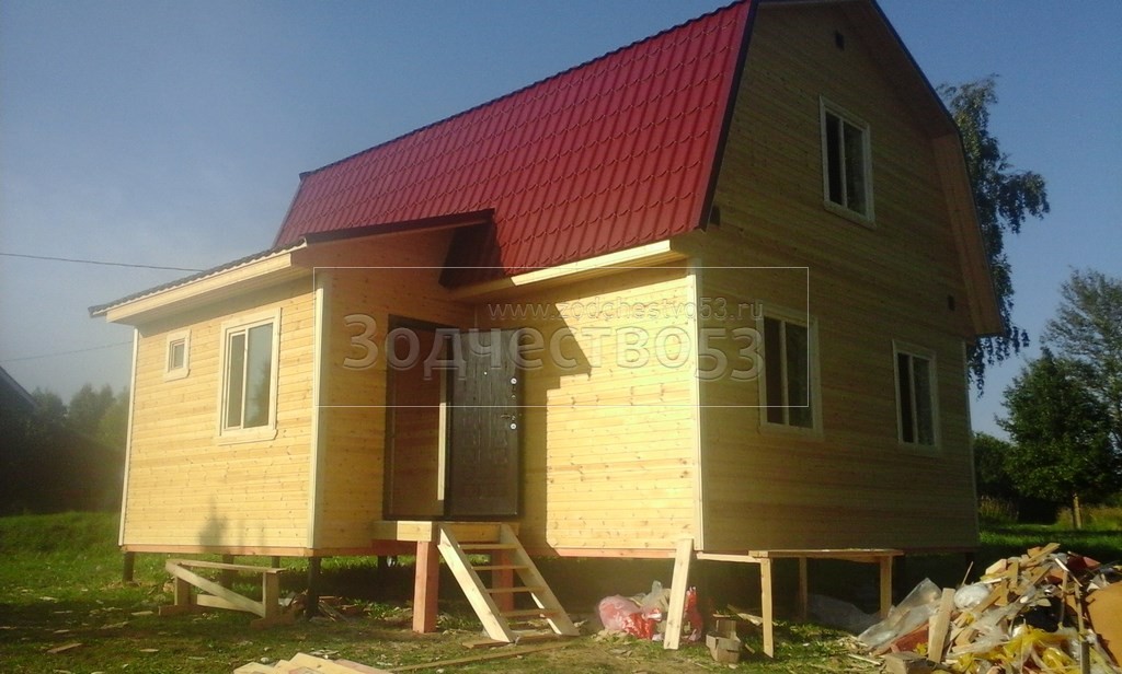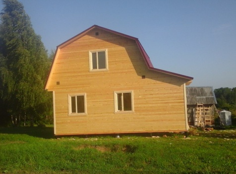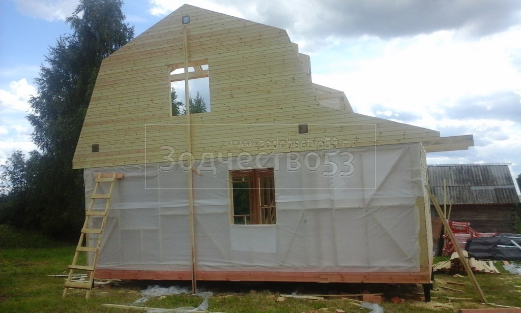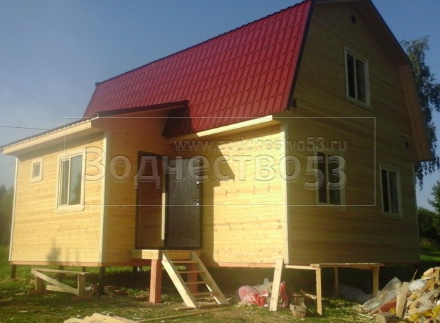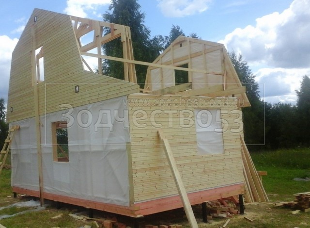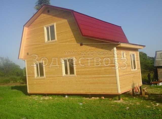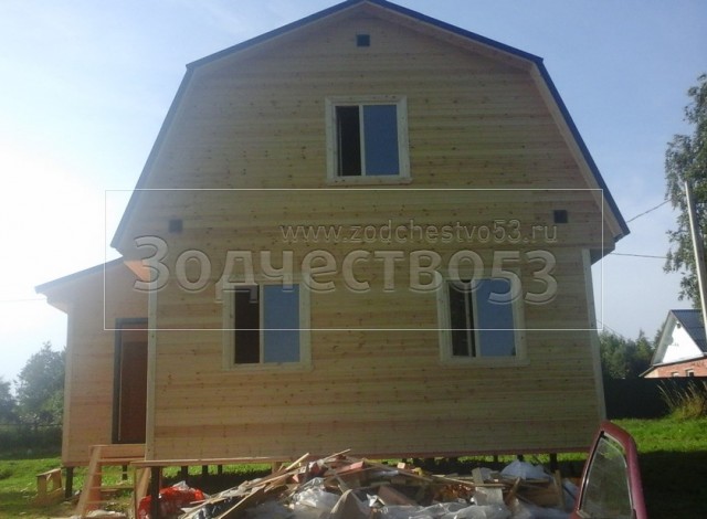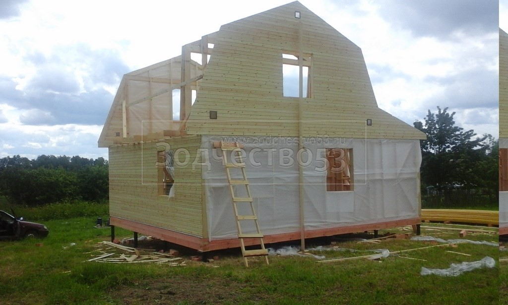 Каркасно-щитовой дом 6,0х7,0 под ломаной крышей и крыльцо 2,0х4,0 под односкатной крышей. Построен в Смоленской обл., Вяземский р-н.