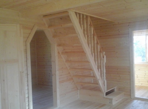 • лестница одномаршевая с точеными балясинами, стартовыми столбами и перилам