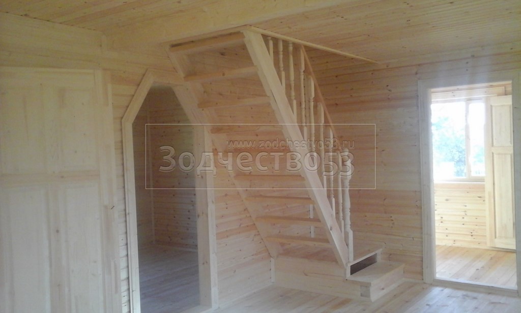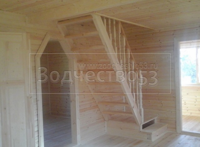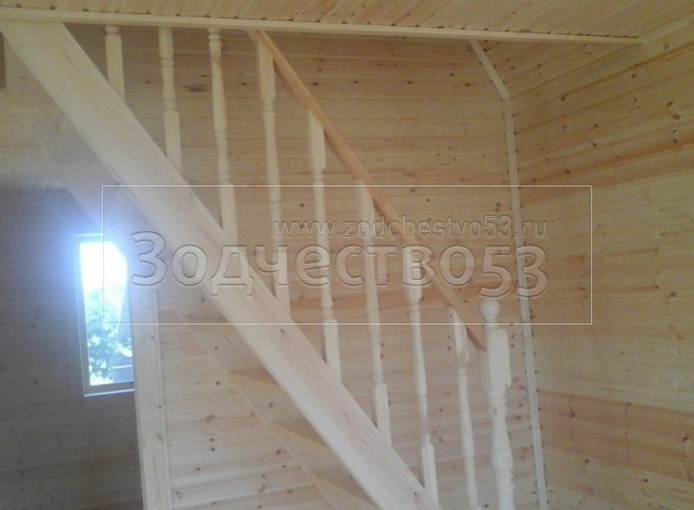 - лестница одномаршевая с точеными балясинами, стартовыми столбами и перилам