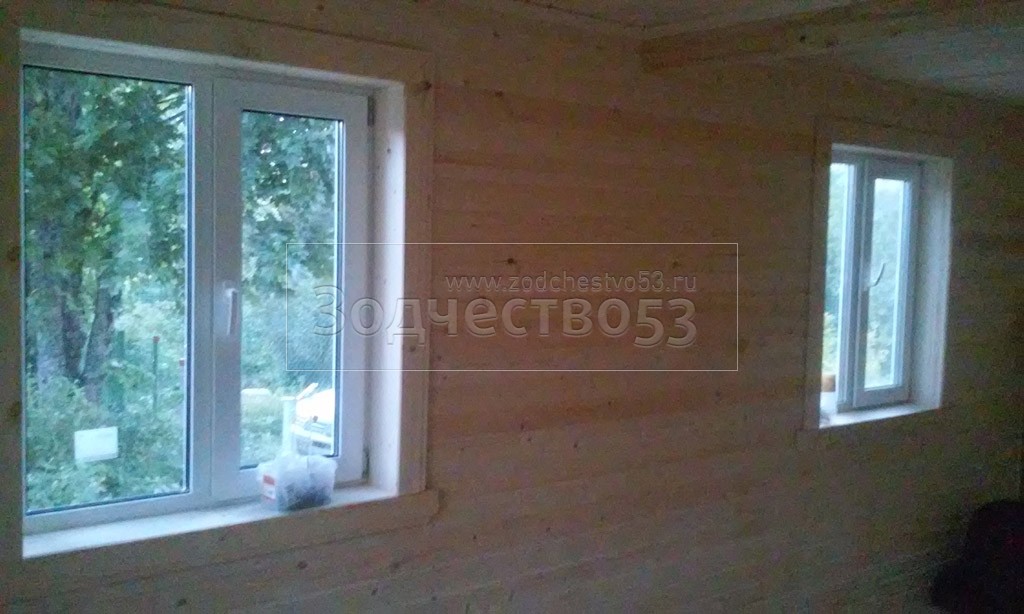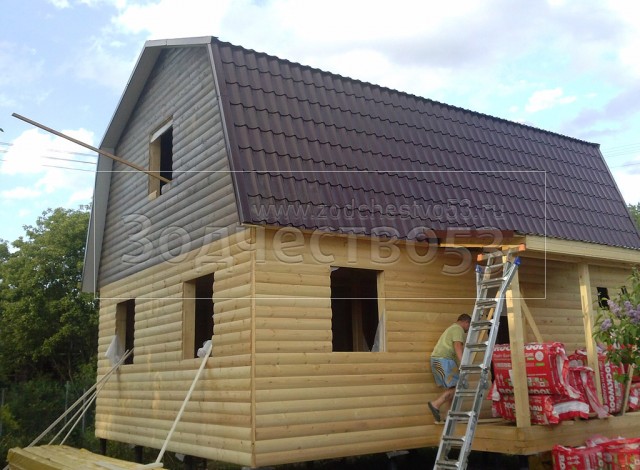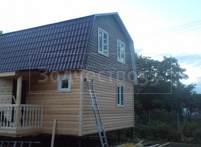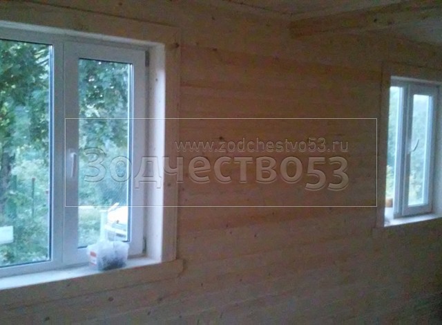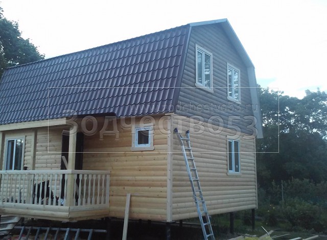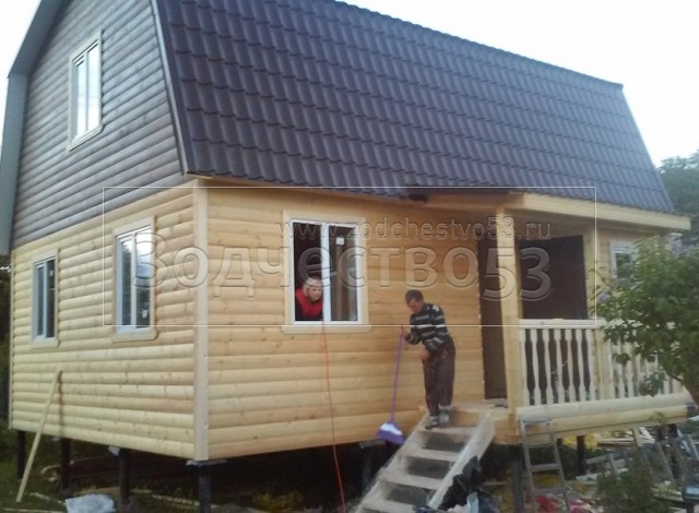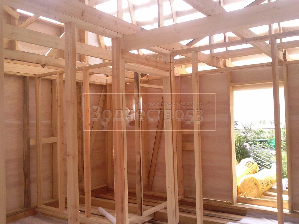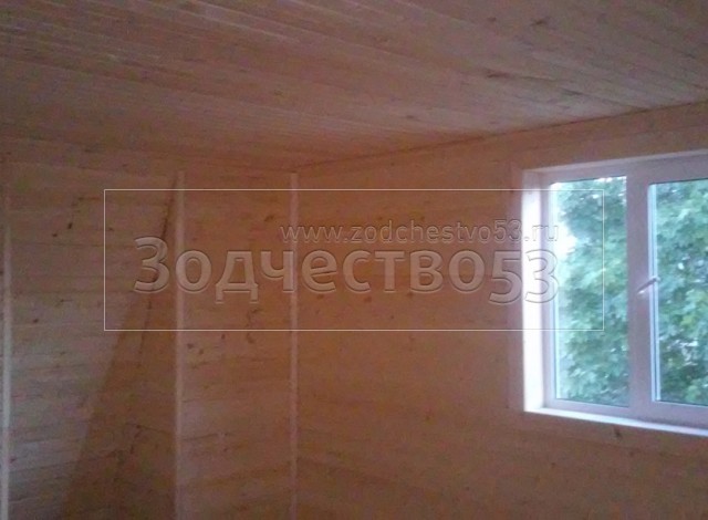 - стены каркасно-щитовые 40×150 внутри обшиваются вагонкой, а снаружи — блок-хаусом