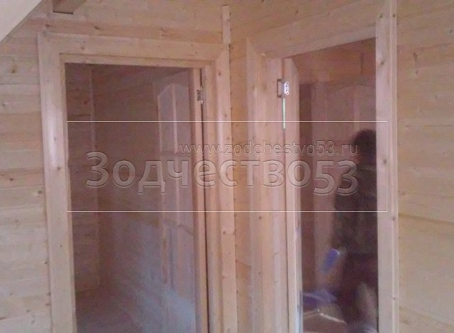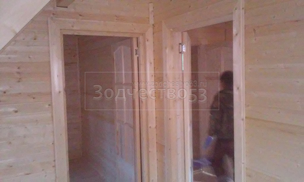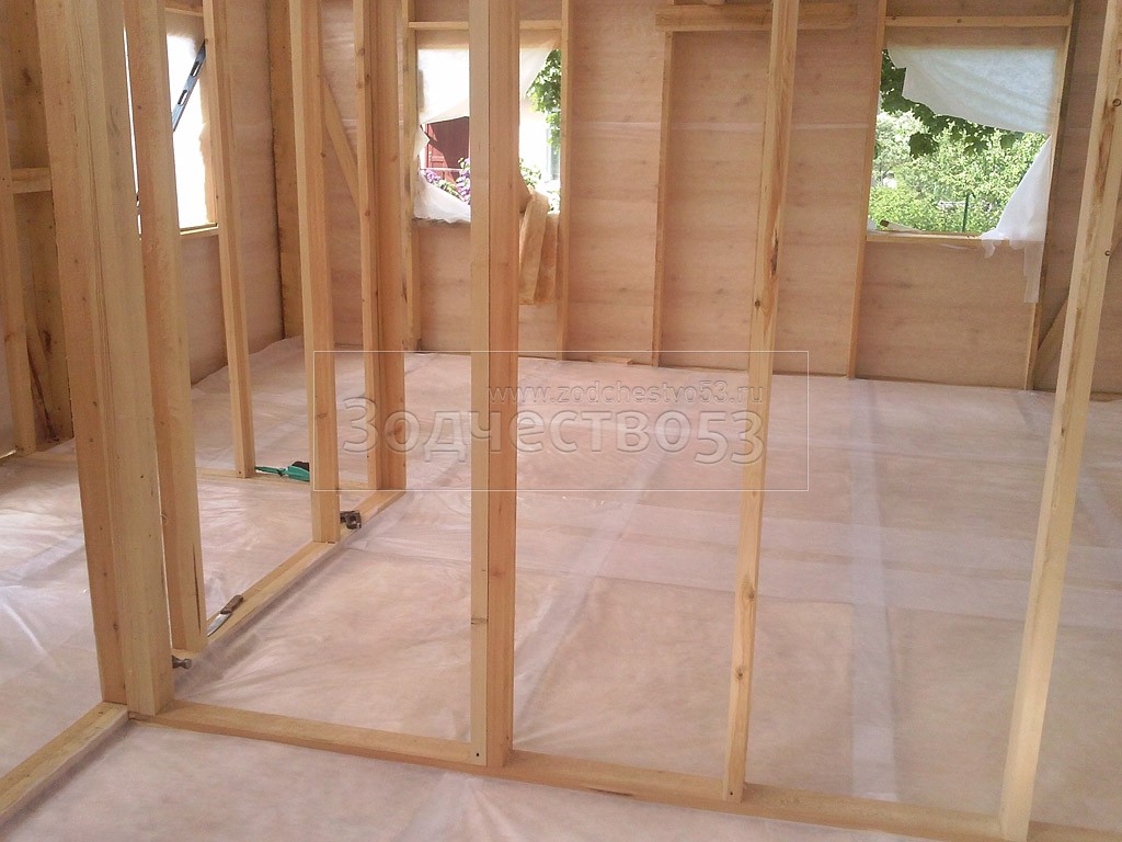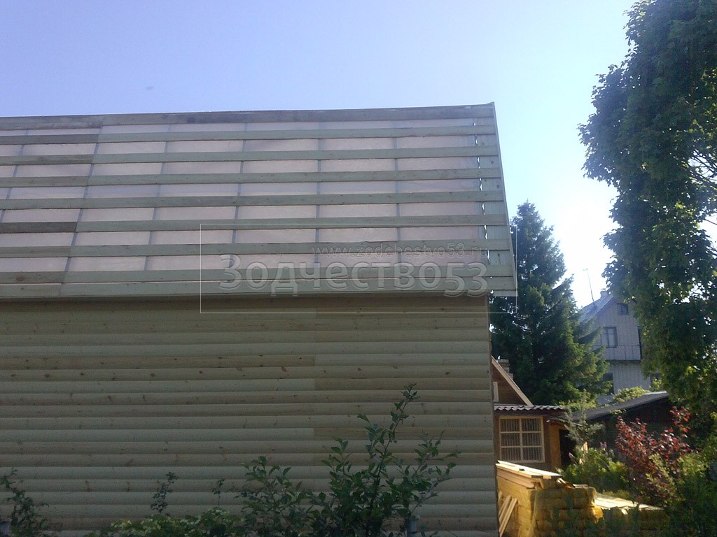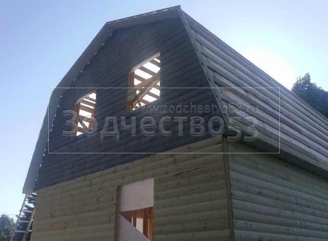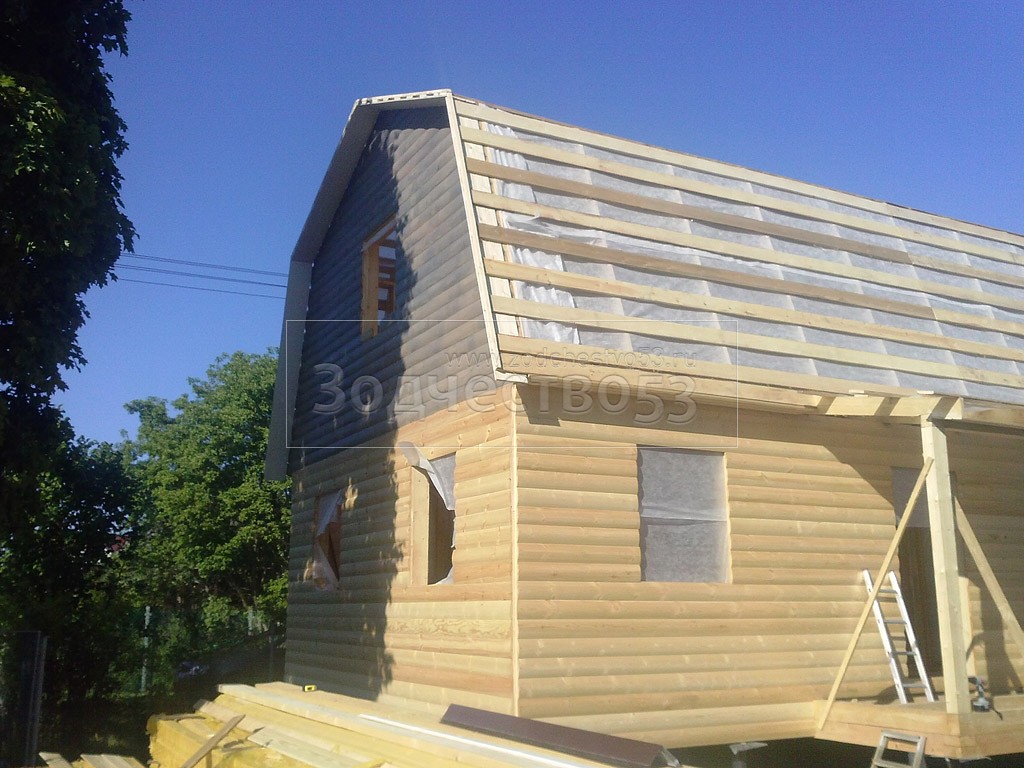 - стены каркасно-щитовые 40×150 внутри обшиваются вагонкой, а снаружи — блок-хаусом
