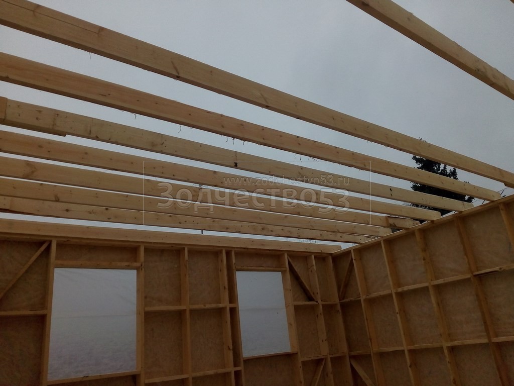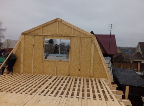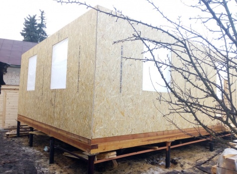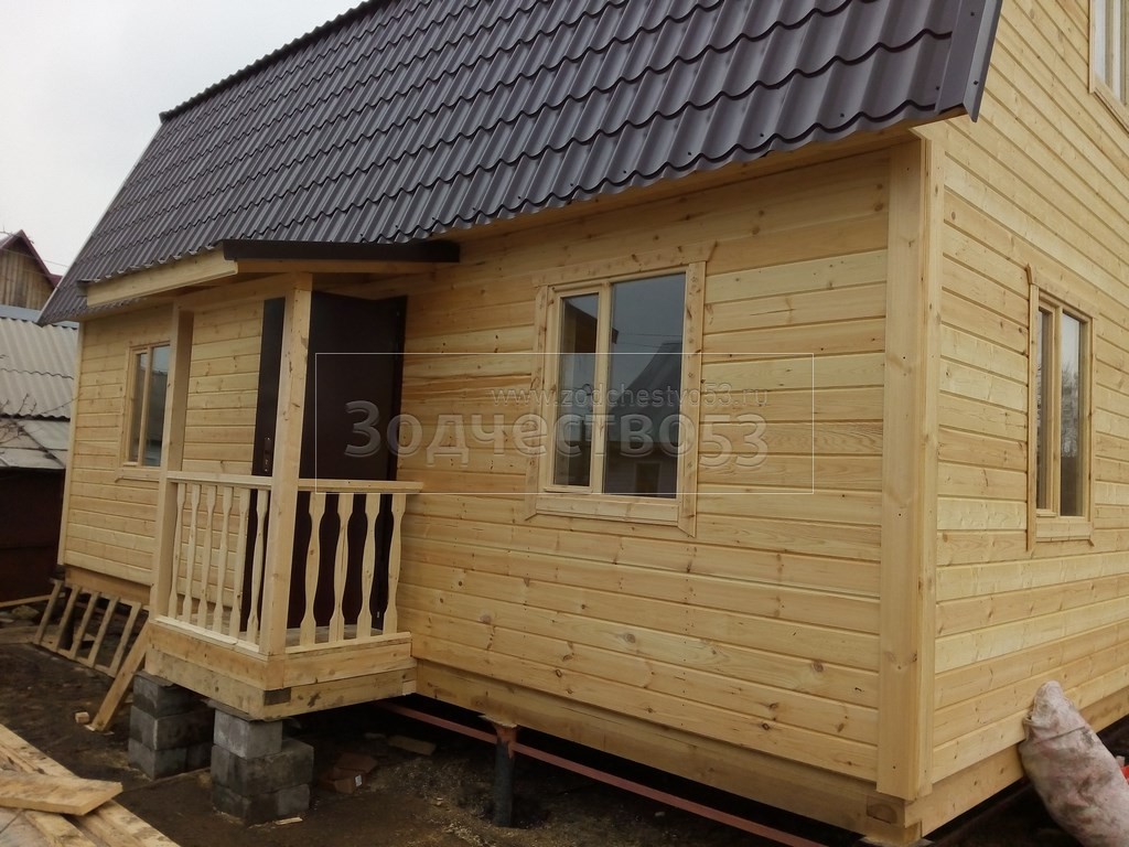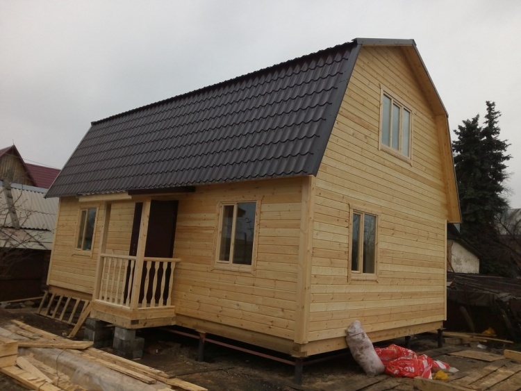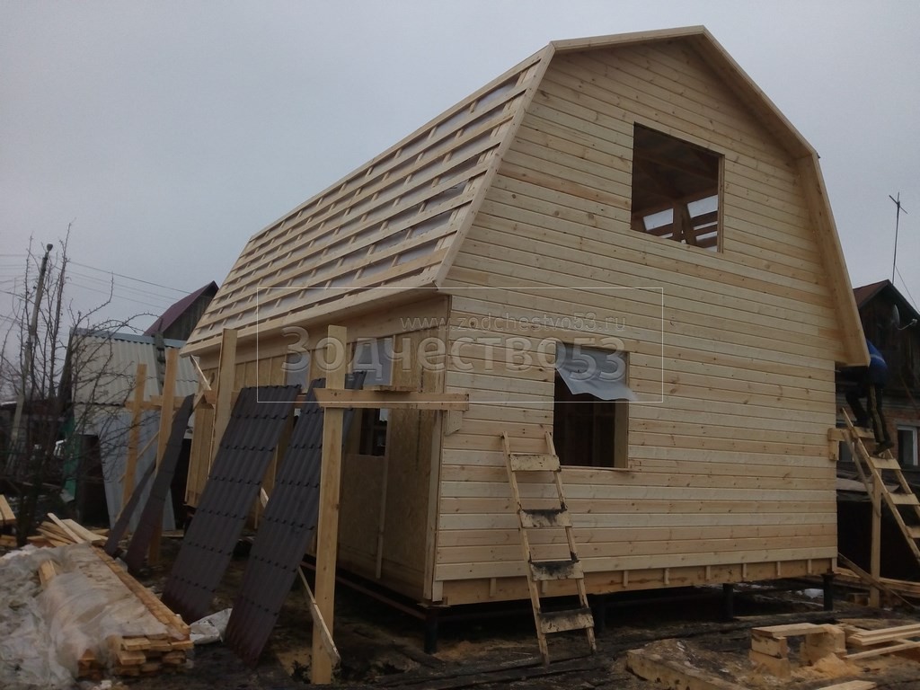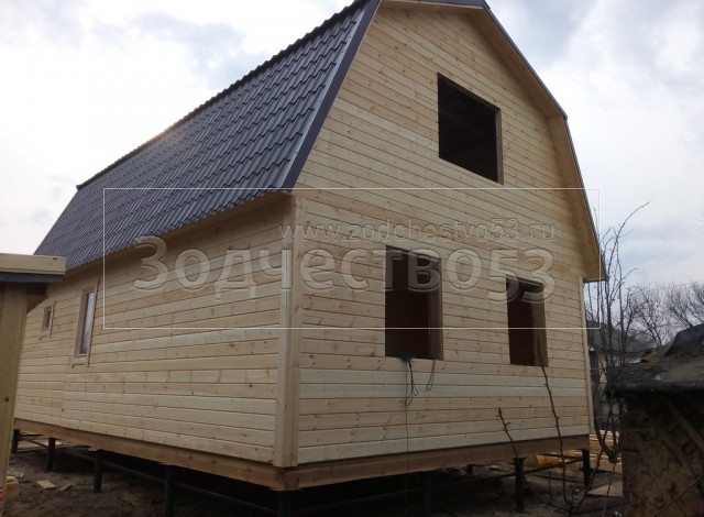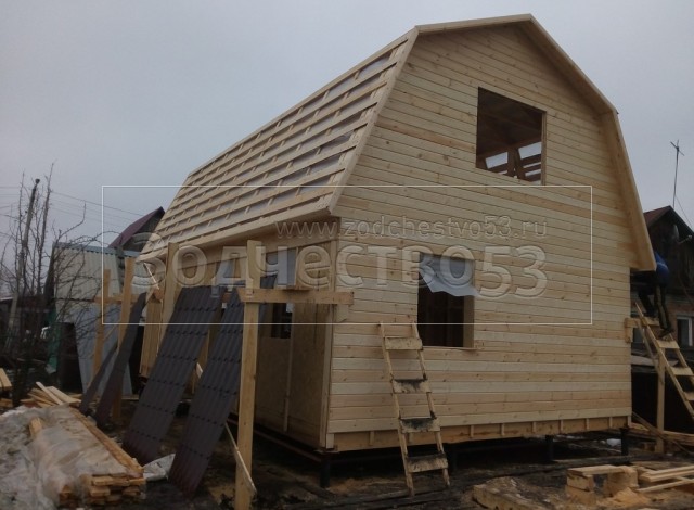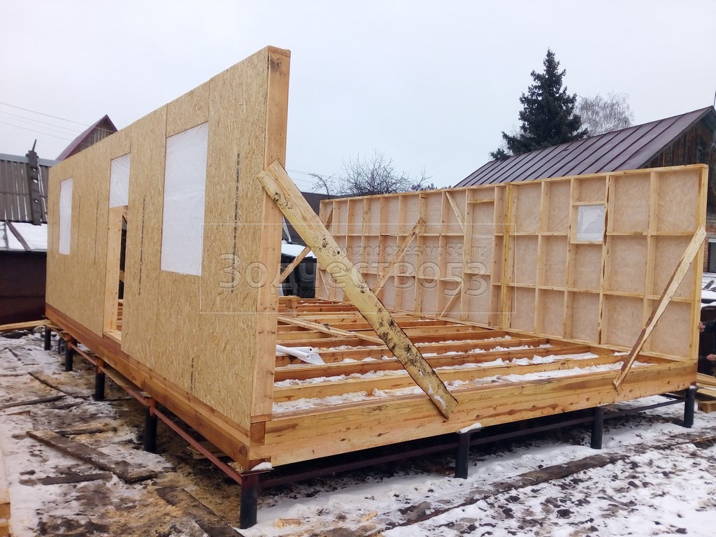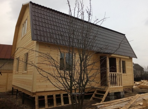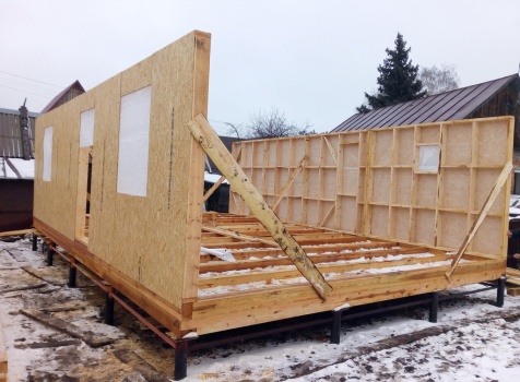 Каркасно-щитовой дом 6,0х9,0 под ломаной крышей и крыльцо 1,0х1,5 под отдельной крышей. Построен в Тамбовской области, г. Мичуринск.