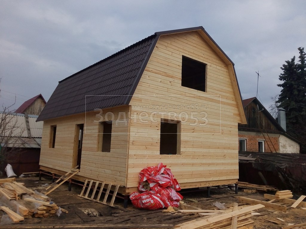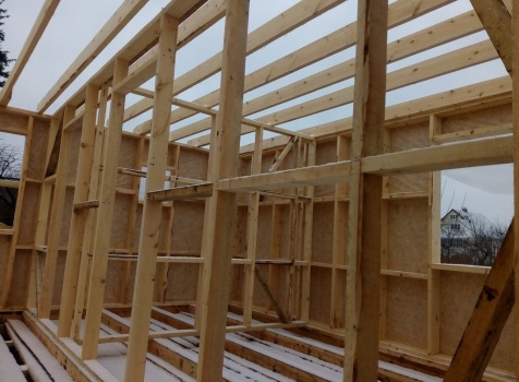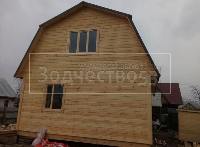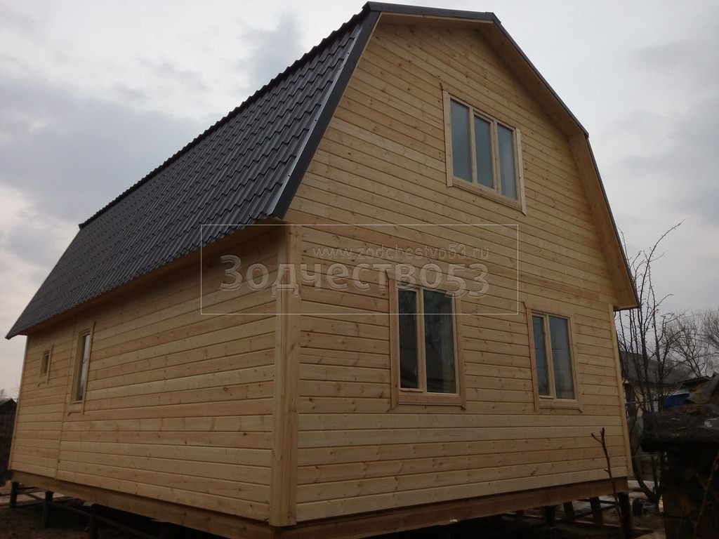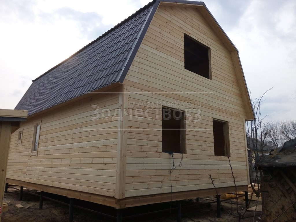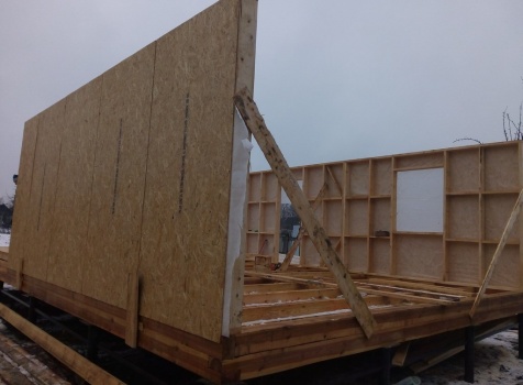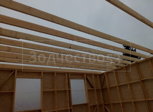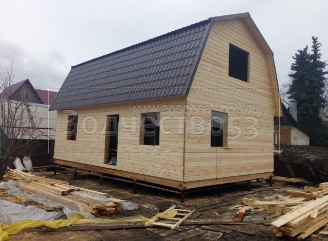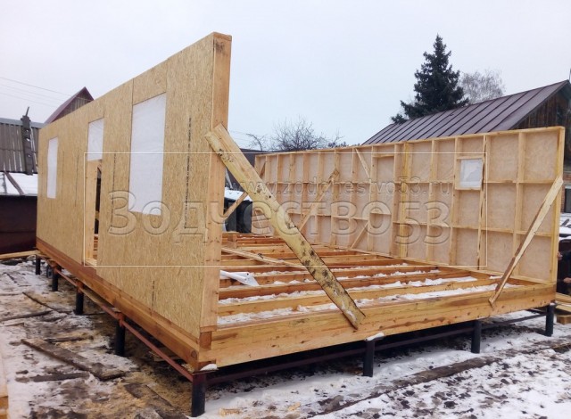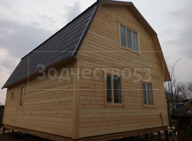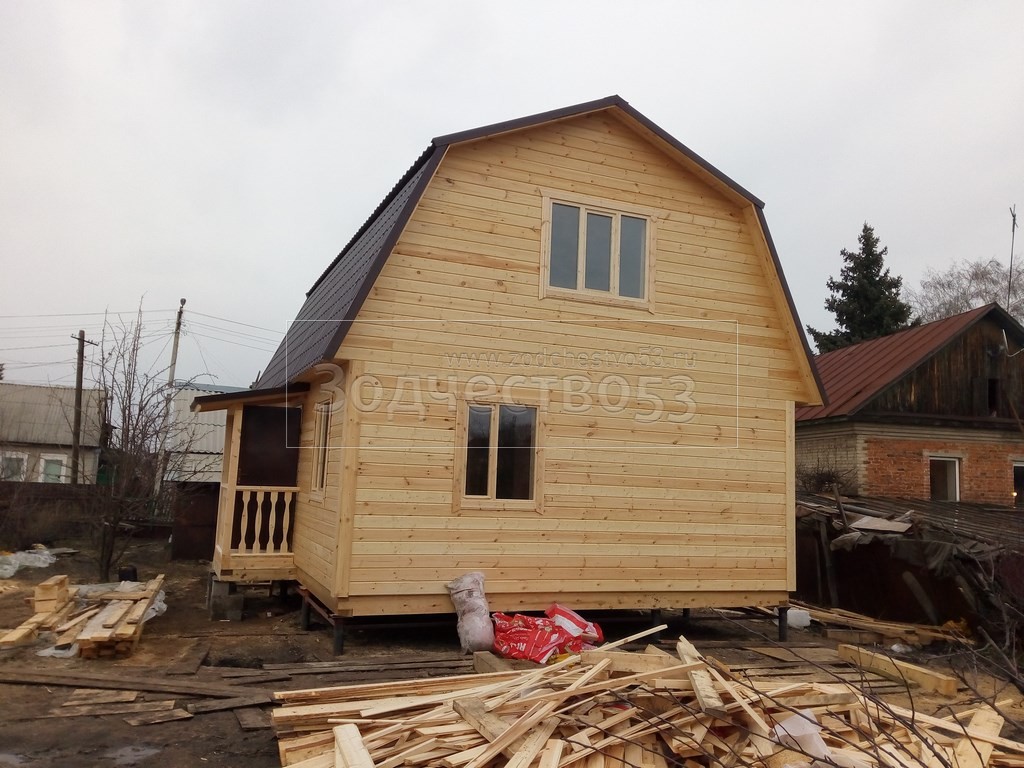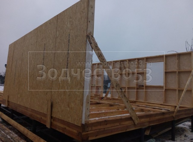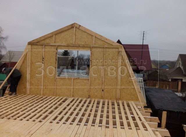 Каркасно-щитовой дом 6,0х9,0 под ломаной крышей и крыльцо 1,0х1,5 под отдельной крышей. Построен в Тамбовской области, г. Мичуринск.