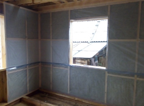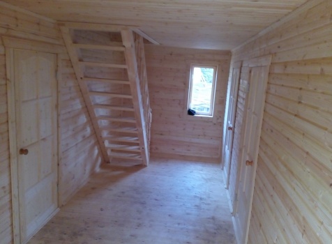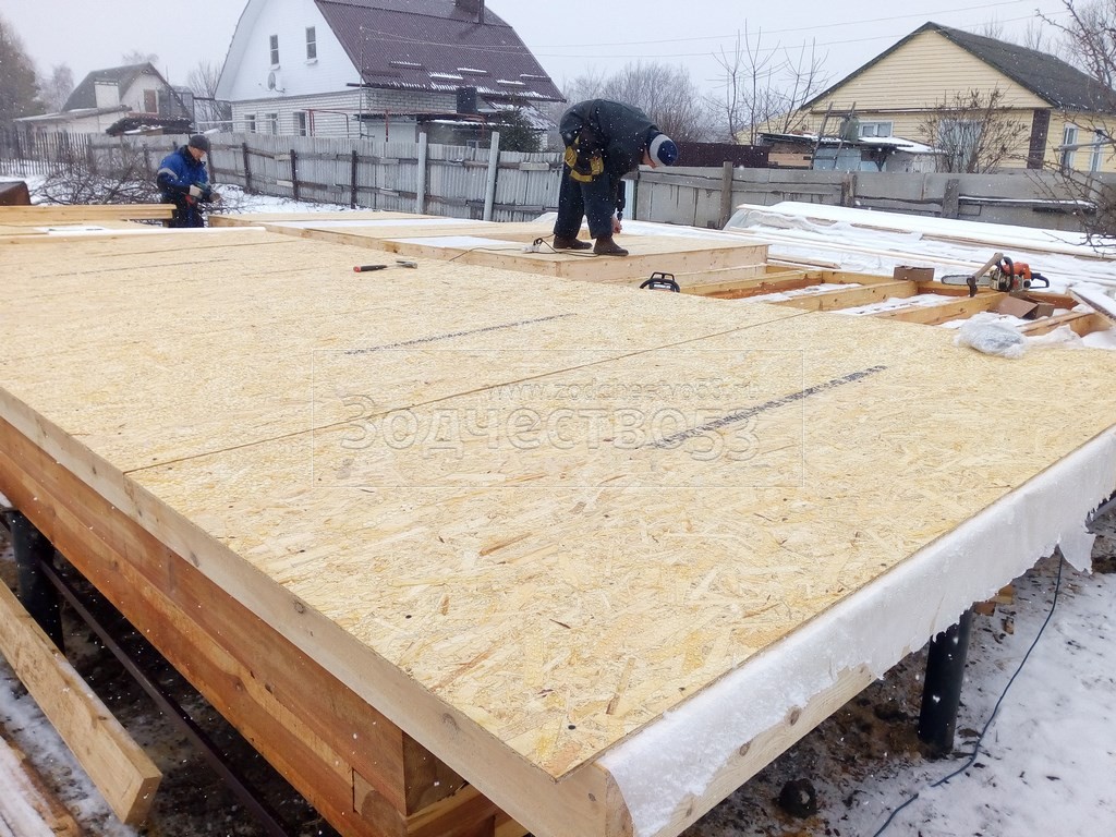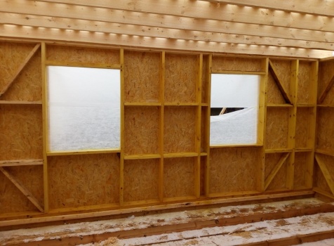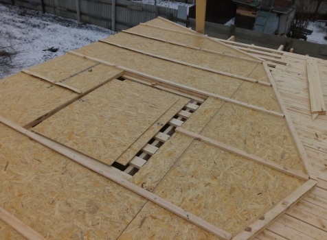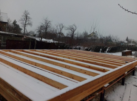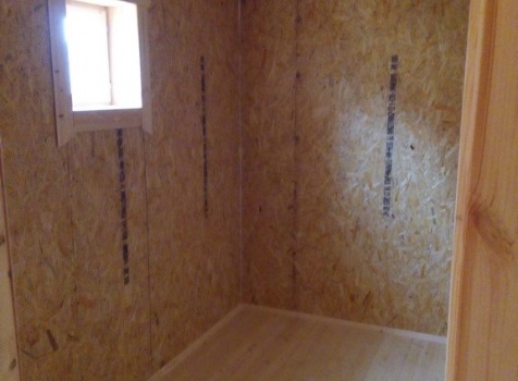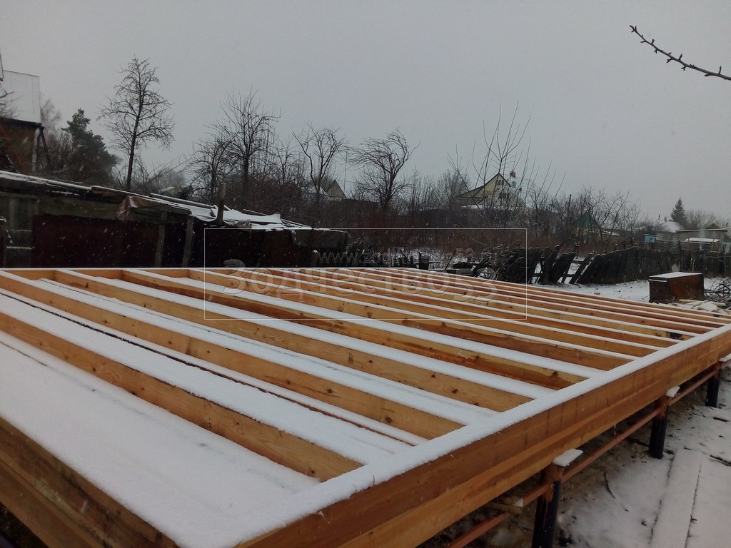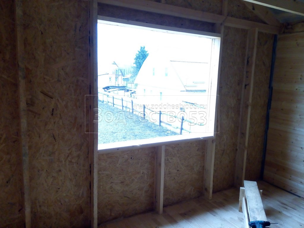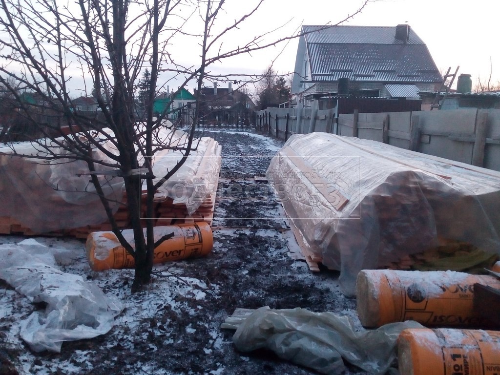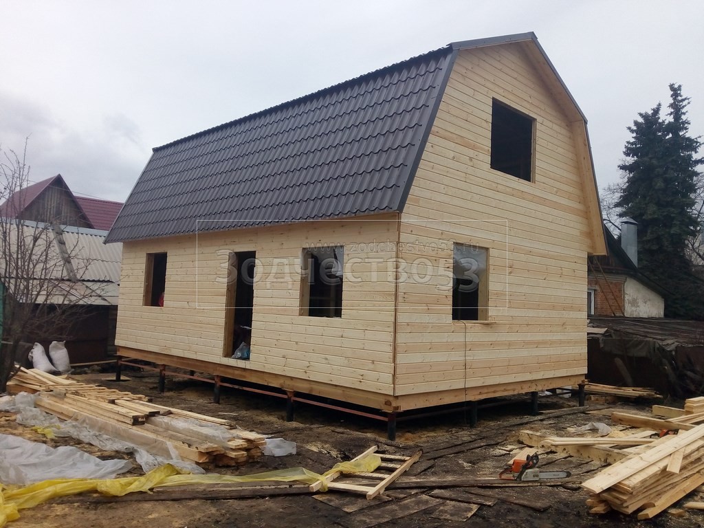 Каркасно-щитовой дом 6,0х9,0 под ломаной крышей и крыльцо 1,0х1,5 под отдельной крышей. Построен в Тамбовской области, г. Мичуринск.