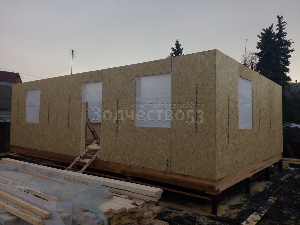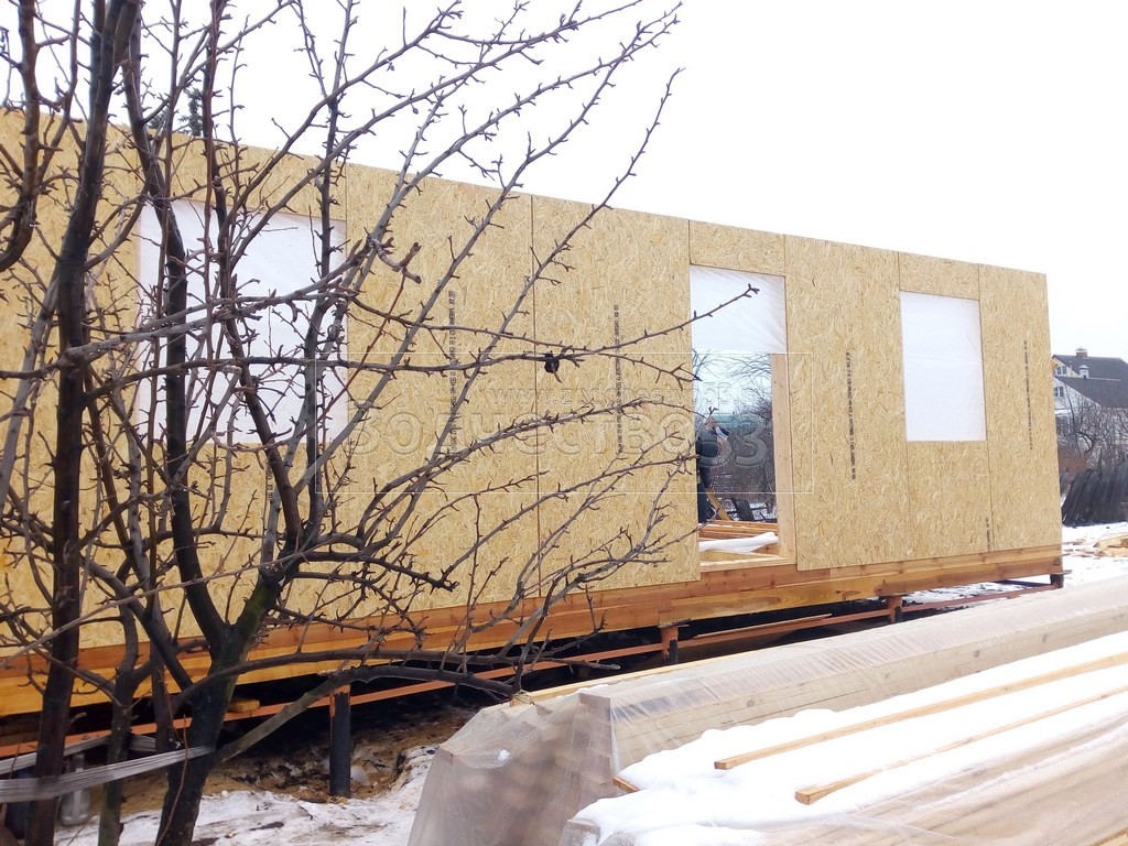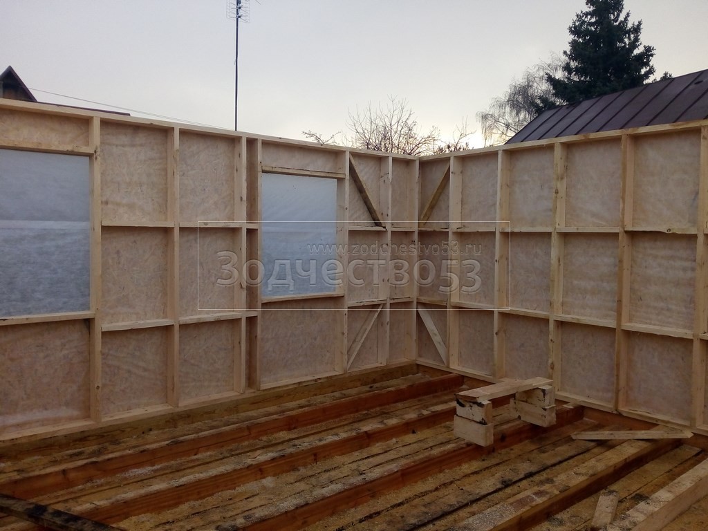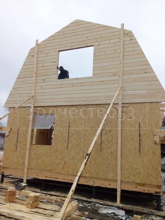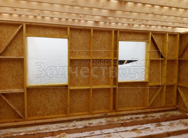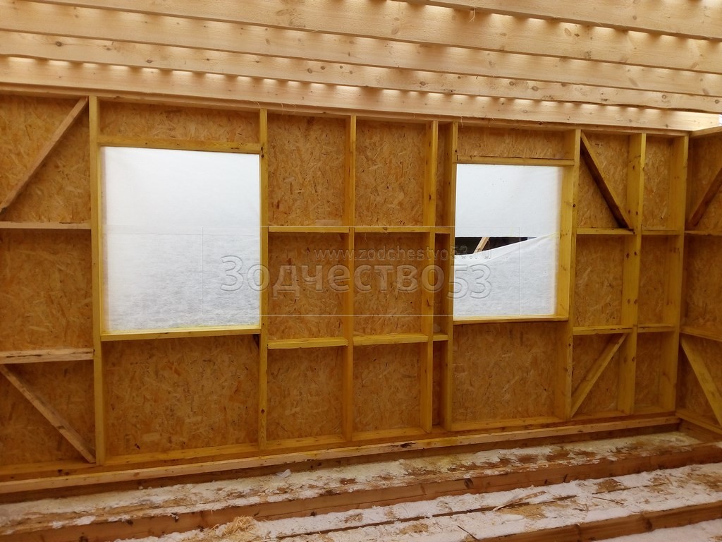 - стены каркасно-щитовые 40х150 обшиваются снаружи влагостойкой OSB и имитацией бруса 22 мм (сухая), а внутри - сухой вагонкой