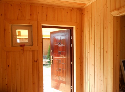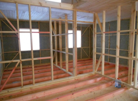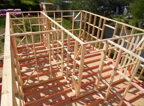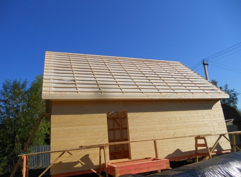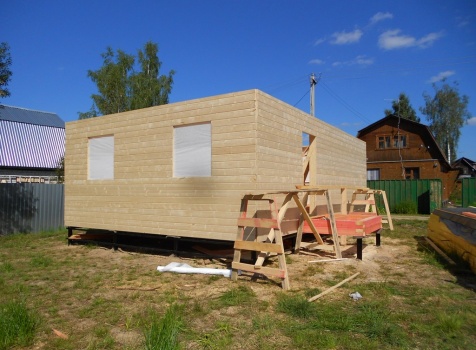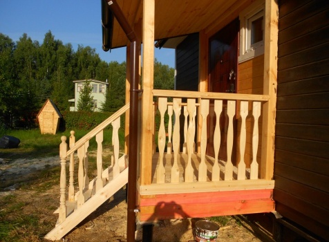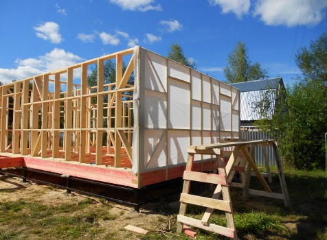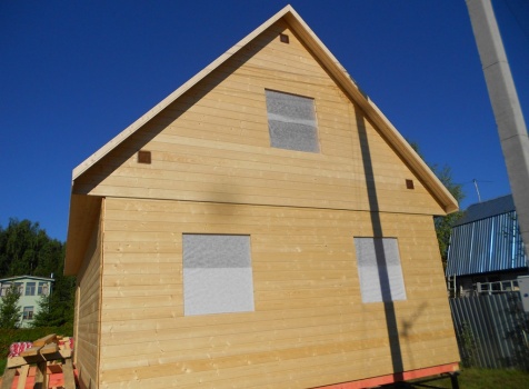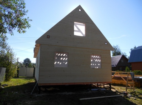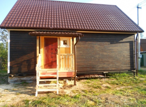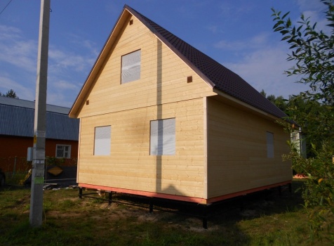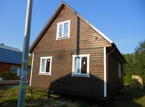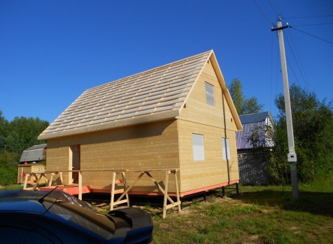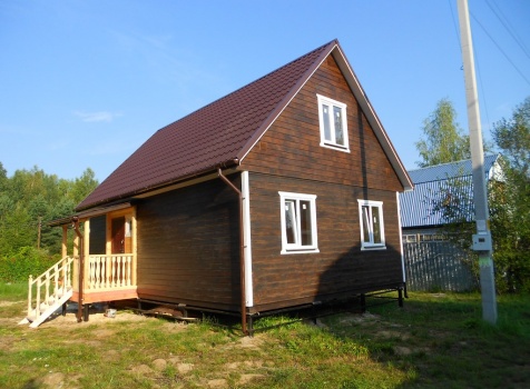 Каркасно-щитовой дом 6,0×9,0 под двухскатной и открытое крыльцо 2,0×1,5 под односкатной крышей. Построен во Владимирской обл., г.Покров
