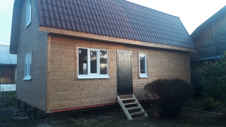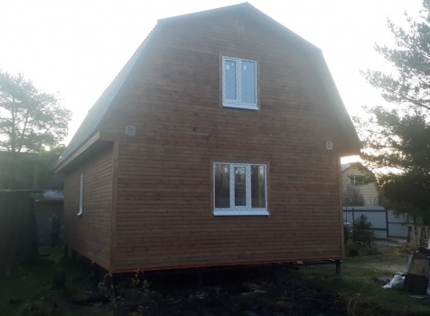 Двухэтажный дом общими размерами 6.0х9.0 каркасно-щитовой под ломанной крышей. Объект построен: Ленинградская область,Тосненский р-он, садоводческий массив Форносово, садоводство "Символ", уч.№145.