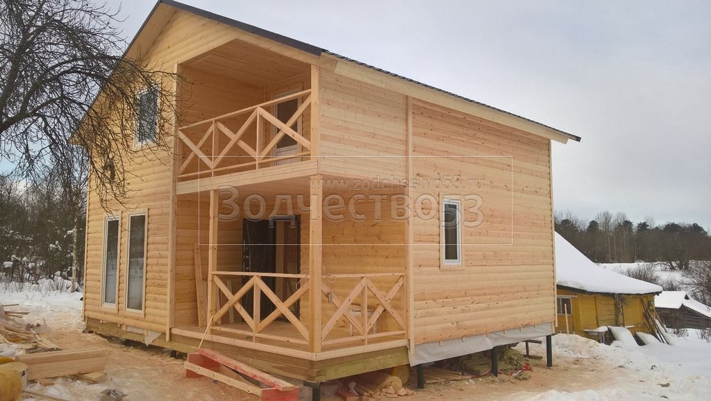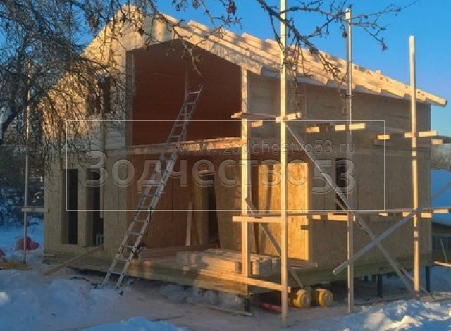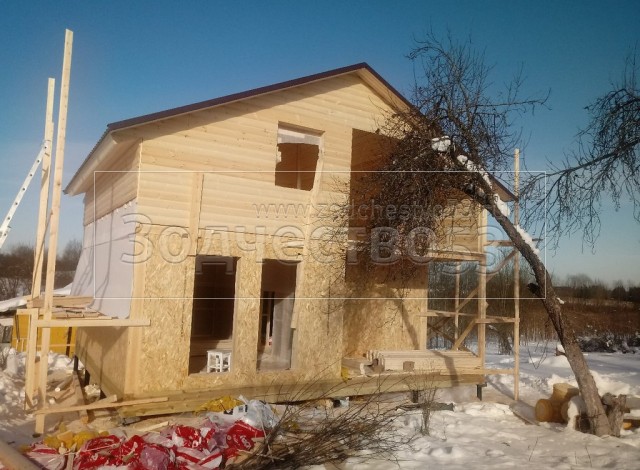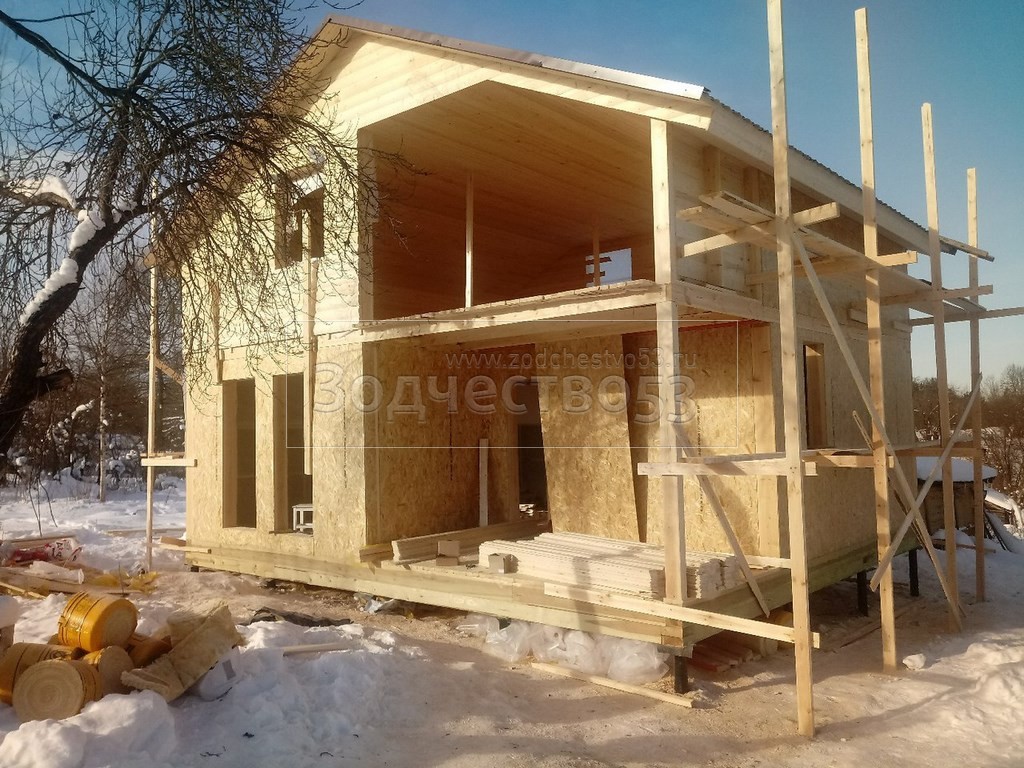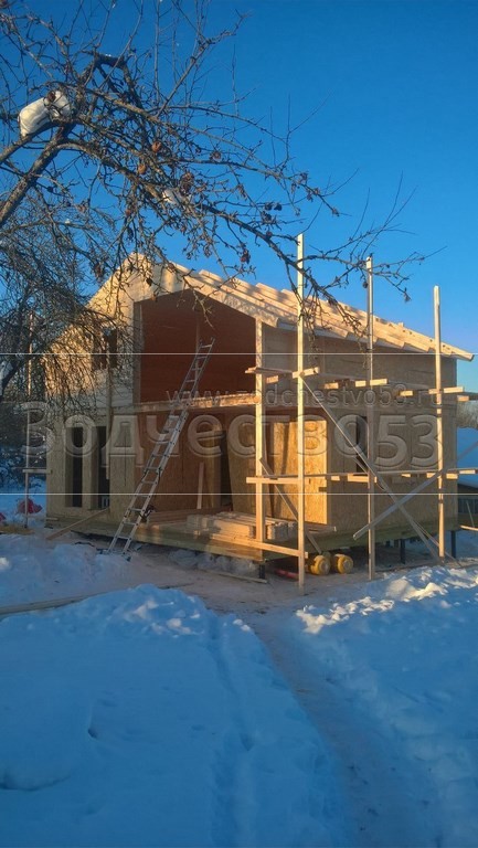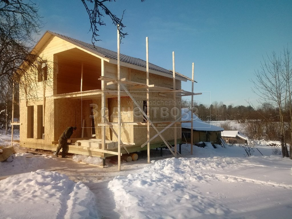 Каркасно-щитовой дом 7,0×8,0 под двухскатной крышей в Ленинградской обл., Лужский р-н, д.Новоселье