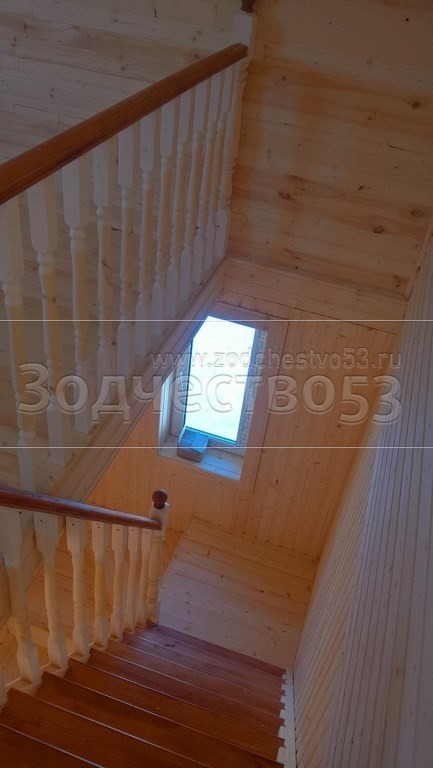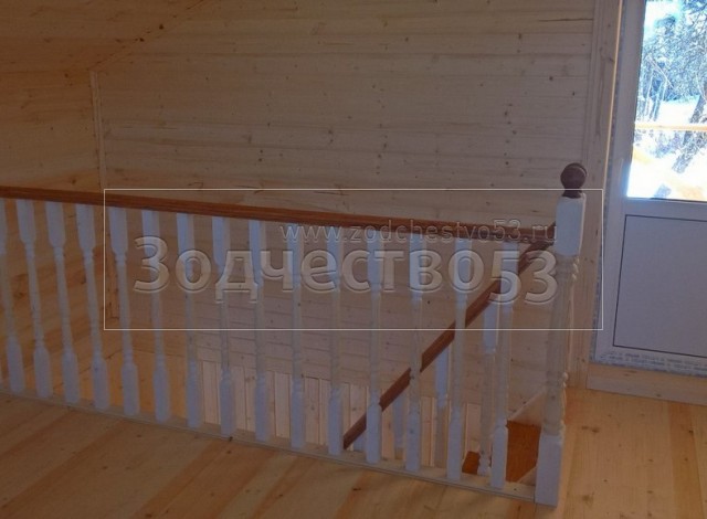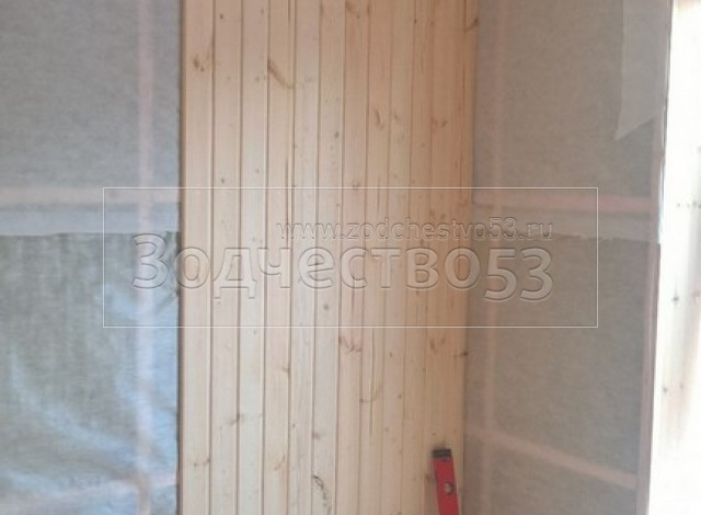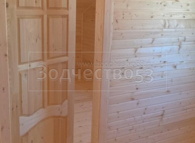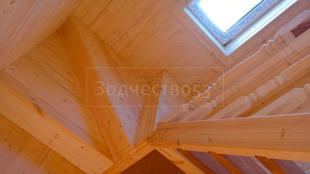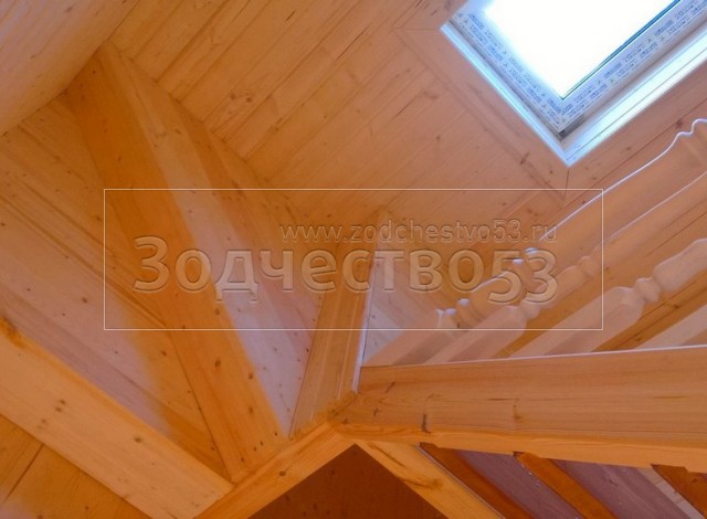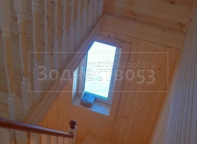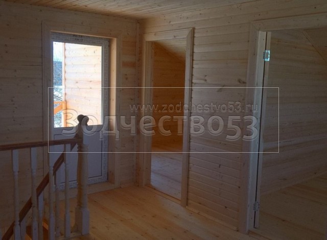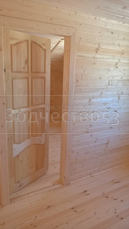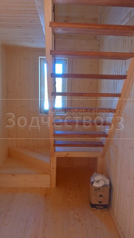 - стены каркасно-щитовые 40×200 обшиты внутри по каркасу фанерой OSB, а снаружи — блок-хаусом