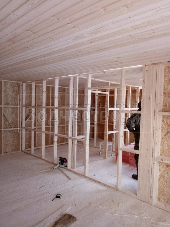 - обработка огнебиозащитой обвязки, лаг, каркаса и черновых полов