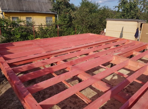Обвязка,лаги и черновой пол обрабатываются огнебиозащитой.