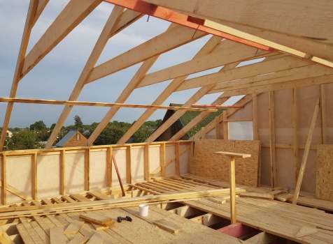 Стропильная конструкция:межэтажные перекрытия 40х200 через 60см.,стропила 40х200 через 90см.