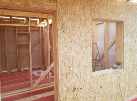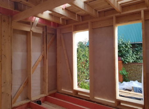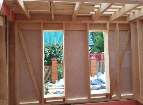 Стены: каркасно-щитовые 40х200,внутри обшиваются вагонкой,снаружи- фанерой ОСБ-9 мм.