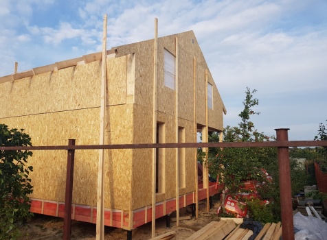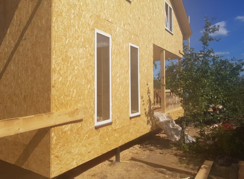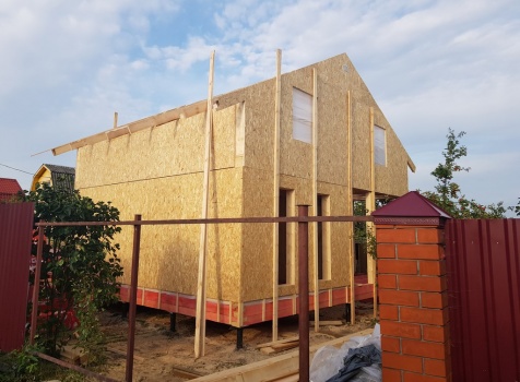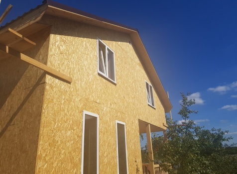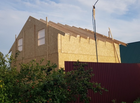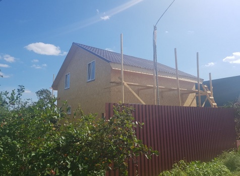 Полутороэтажный, каркасно-щитовой дом, общими размерами 7.0х8.0 под двухскатной крышей. Объект построен: Московская обл., г. Климовск. СНТ "Весна-6", уч.66.