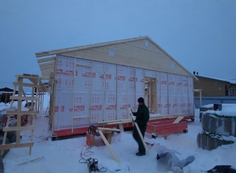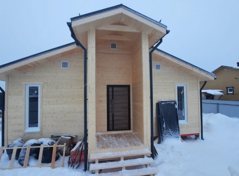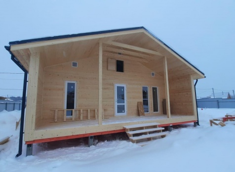 Постройка одноэтажного дома с открытой террасой и крыльцом, общими размерами 16.50×9.0 ( дом 12.50×9.0 ) каркасный (Камерной сушки) с утеплением в 200 мм (стены) и ( открытая терраса 2.50×9.0 ) под общей двухскатной крышей и ( крыльцо 1.50×2.0 ) под отдельной двухскатной крышей ( с общим коньком ) по проекту: https://zodchestvo53.ru/evangelina