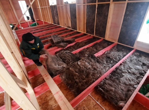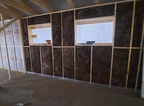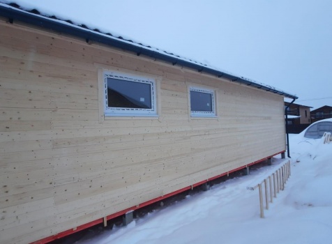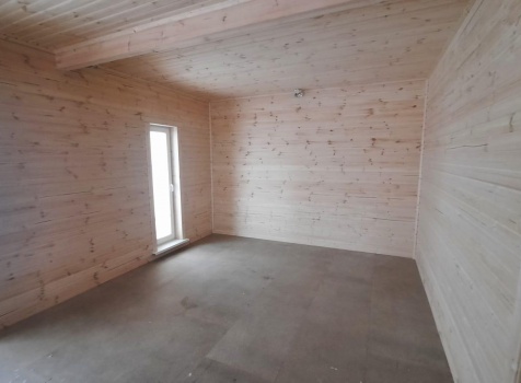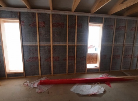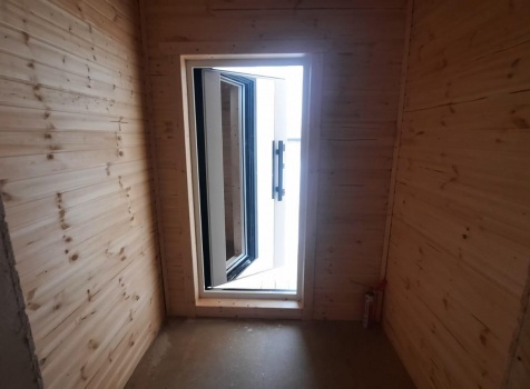 • Фронтоны по 9.0 метрам ( согласно проекта ) : каркасно-щитовые (Камерной сушки) обшиваются Имитацией бруса . Установка дверцы во фронтоне