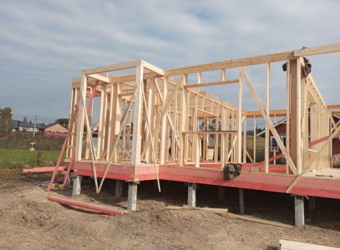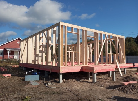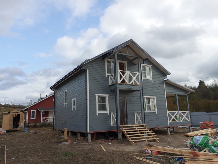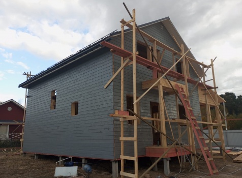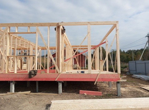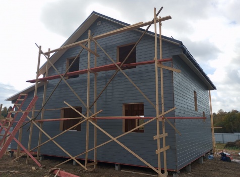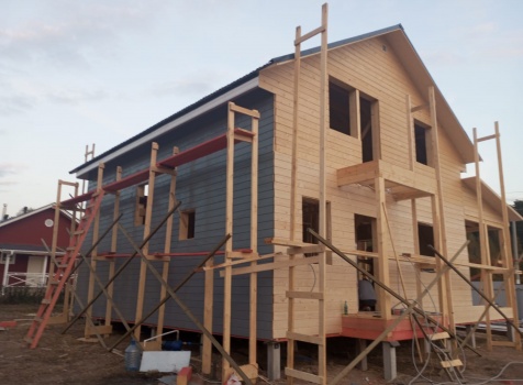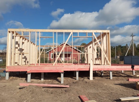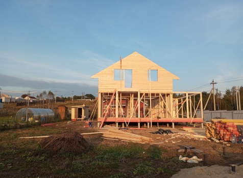 Постройка полутораэтажного дома с открытым крыльцом , балконом и открытой террасой общими размерами 10.0×10.50 ( 9.0×7.50 Дом ) каркасно-щитовой (Камерной сушки) с утеплением в 200 мм (стены),под двухскатной крышей плюс ( 1.0×2.0 открытое крыльцо и балкон ); под отдельной двухскатной крышей и ( 9.0×3.0 открытая терраса ) под отдельной односкатной крышей