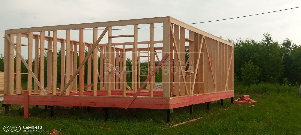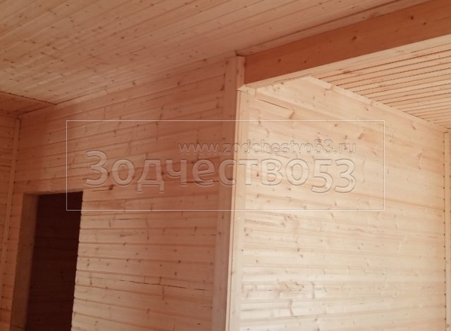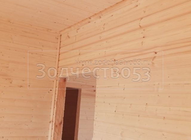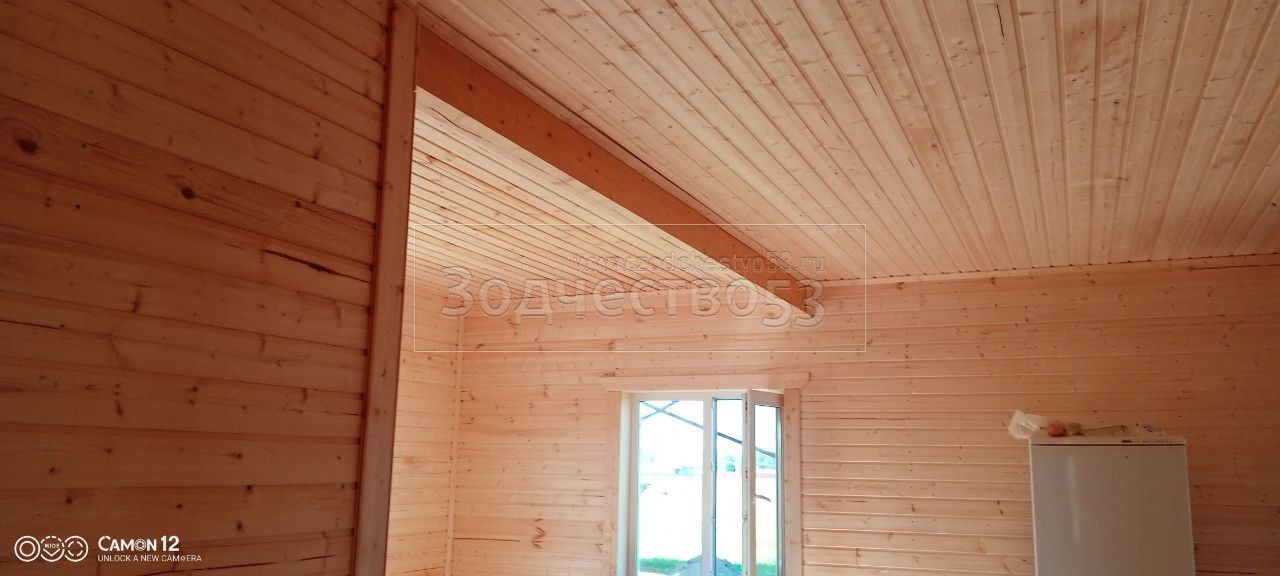 - Стены : каркасно-щитовые, каркас снаружи обшивается сухой Имитацией бруса, а внутри стены обшиваются сухой Вагонкой.