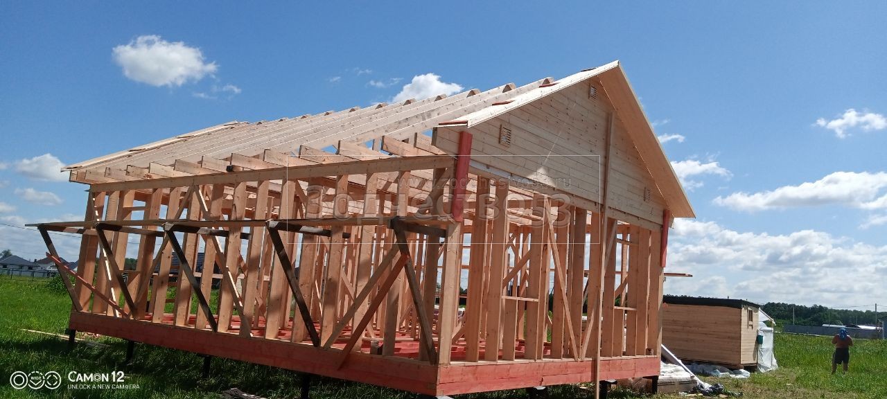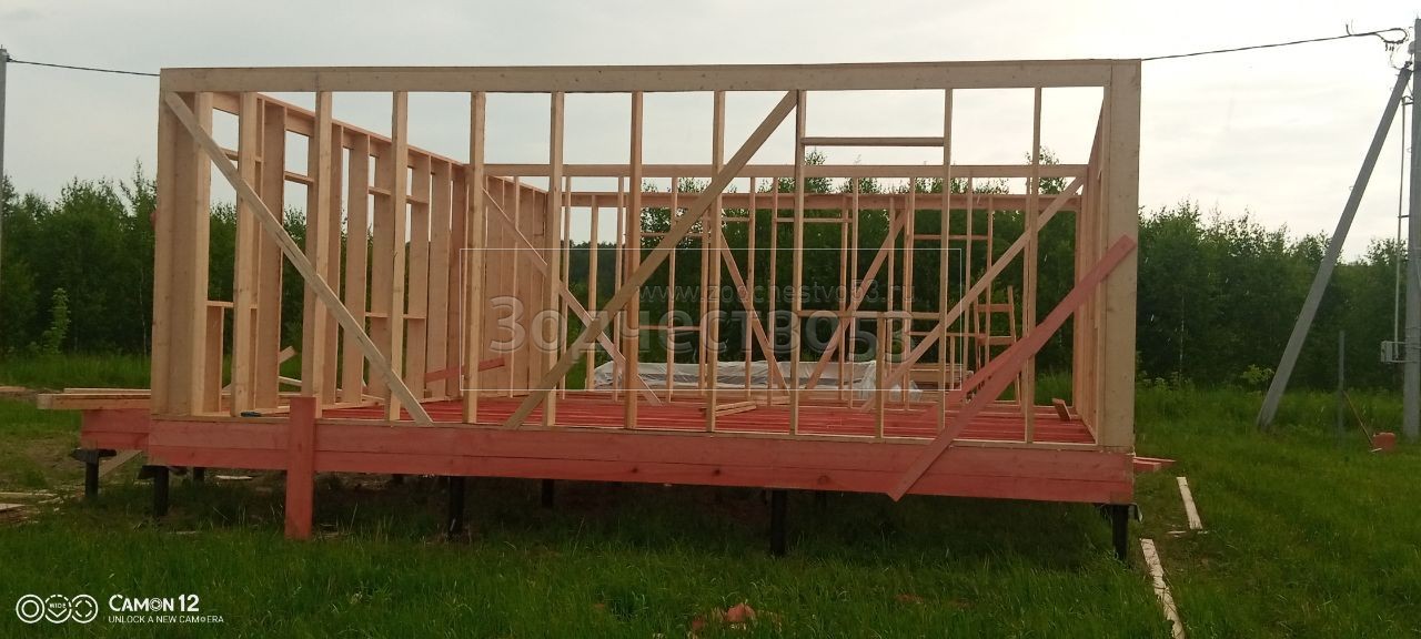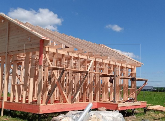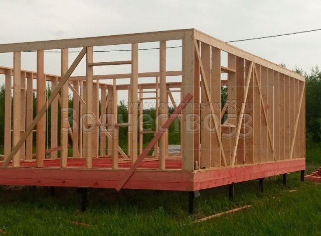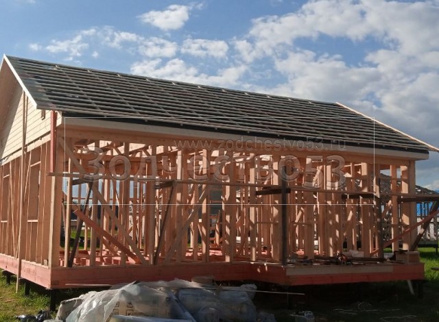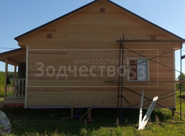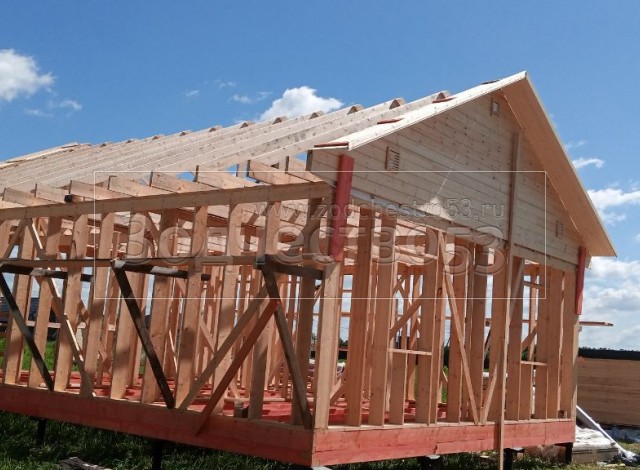 Постройка одноэтажного дома с открытой террасой, общими размерами 10.0×9.0 ( 10.0×7.50 дом ) каркасно-щитовой (Камерной сушки) с утеплением в 200 мм (стены) под двухскатной крышей и ( 4.0×1.50 открытая терраса ) под отдельной односкатной крышей: https://zodchestvo53.ru/dzhamilya