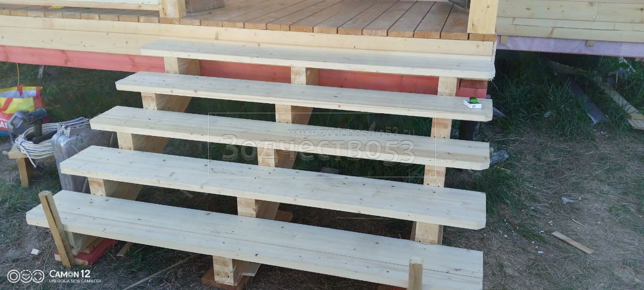 - Ступени временные к дому: обрезная доска без перил и балясин.