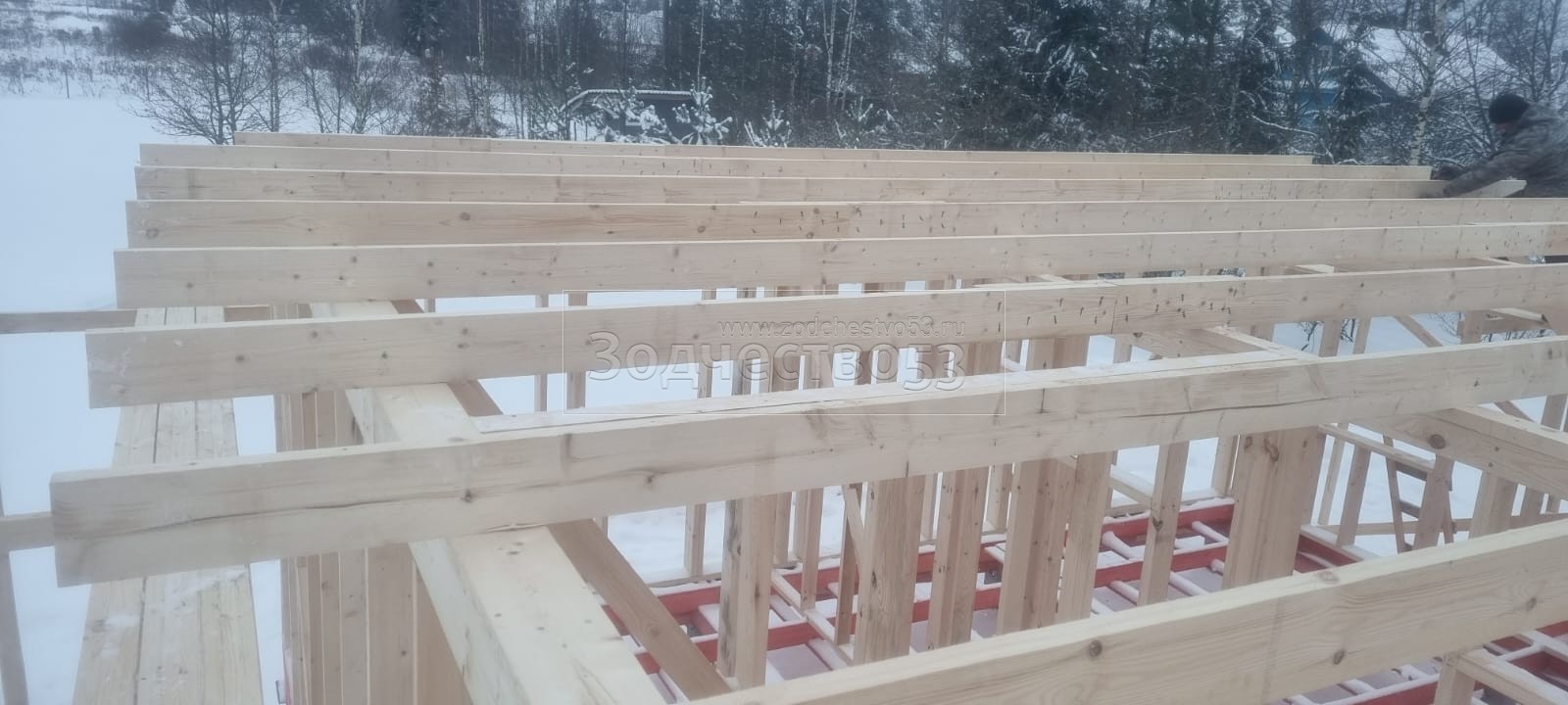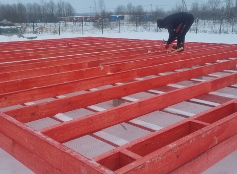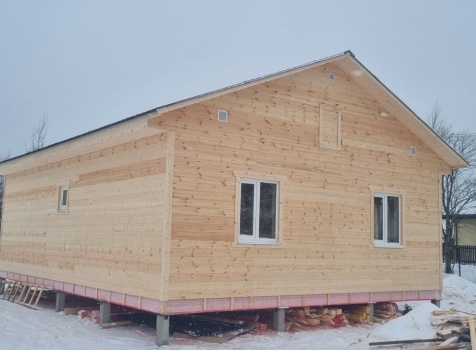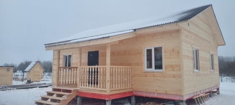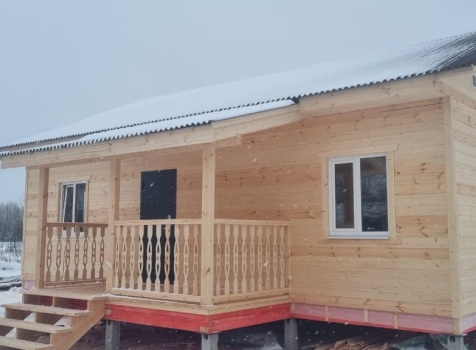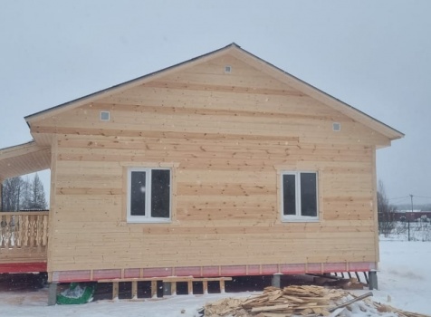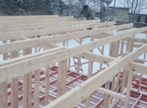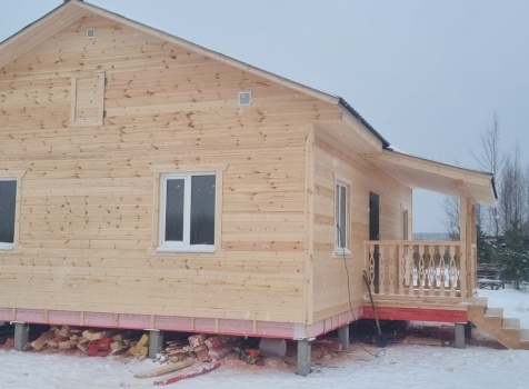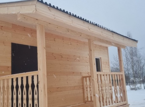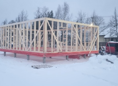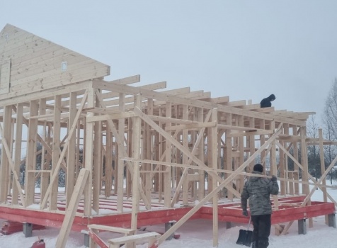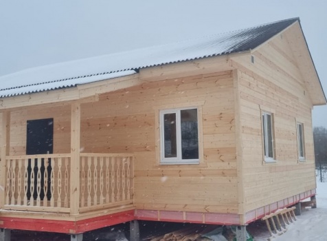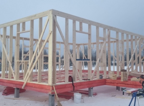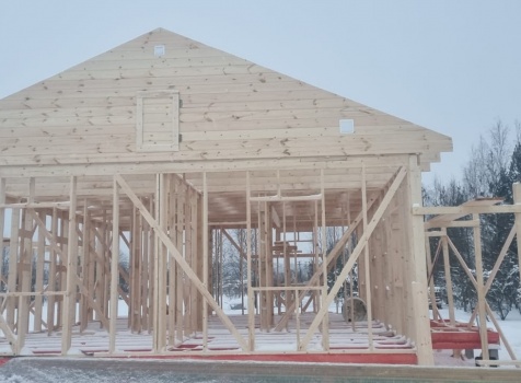 Постройка одноэтажного дома с открытой террасой общими размерами 10.0×9.50 ( 10.0×7.50 дом ) каркасно-щитовой (Камерной сушки) с утеплением в 150 мм (стены) под двухскатной крышей и ( 4.0×2.0 открытая терраса ) под отдельной односкатной крышей .