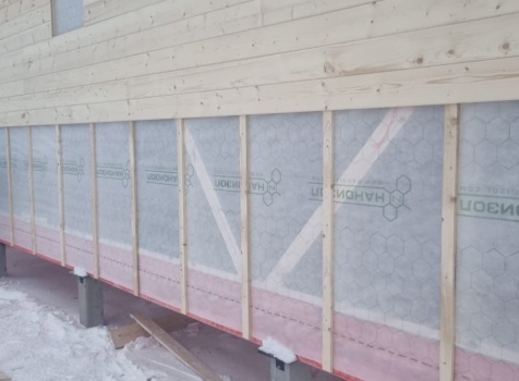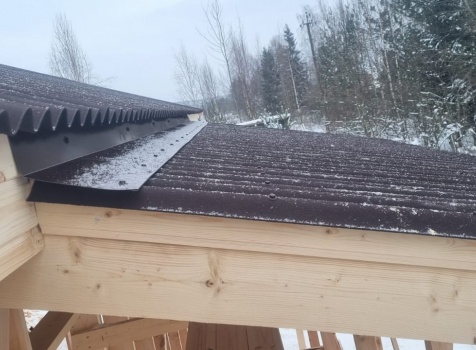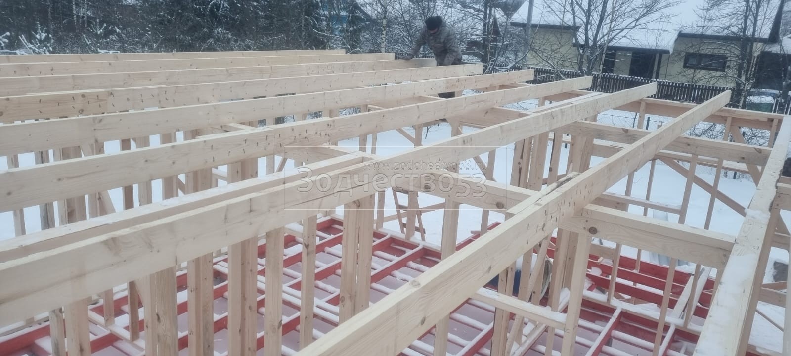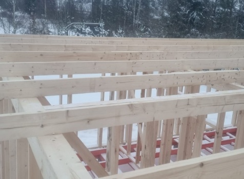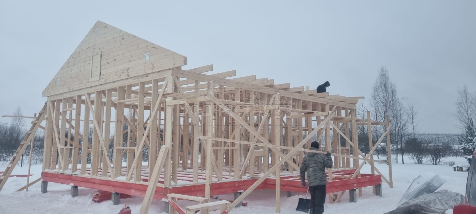 Постройка одноэтажного дома с открытой террасой общими размерами 10.0×9.50 ( 10.0×7.50 дом ) каркасно-щитовой (Камерной сушки) с утеплением в 150 мм (стены) под двухскатной крышей и ( 4.0×2.0 открытая терраса ) под отдельной односкатной крышей .