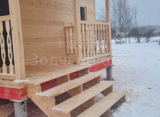 - Терраса: открыта, с резными балясинами , перилами и столбами. Полы и потолки не утепляются . Потолки подшиваются Вагонкой ( по стропилам ) . Полы шпунтованная доска