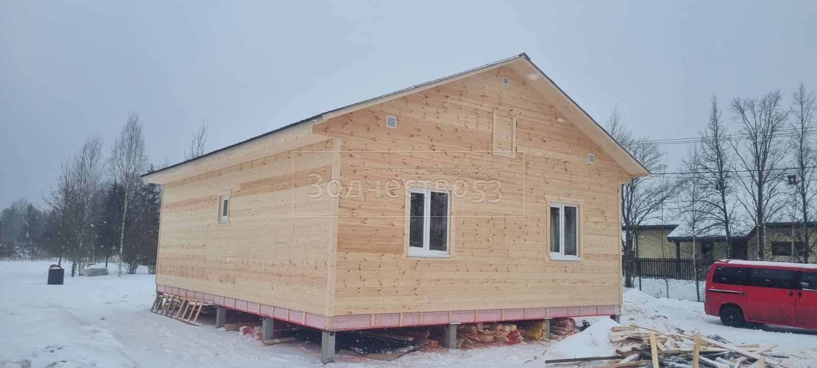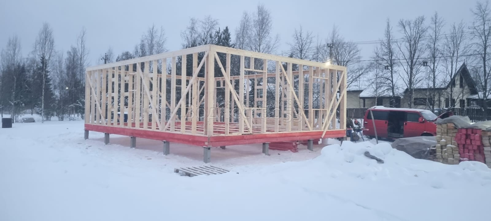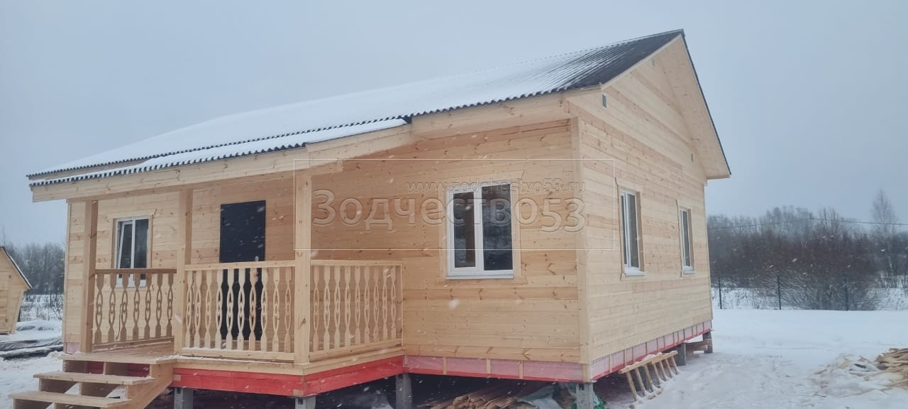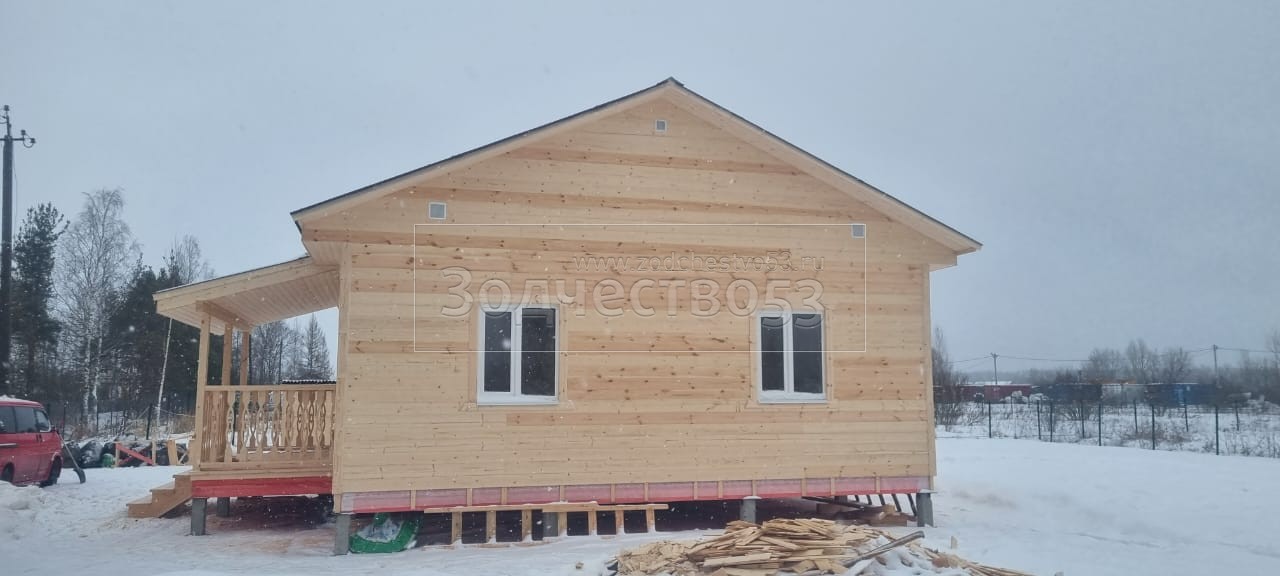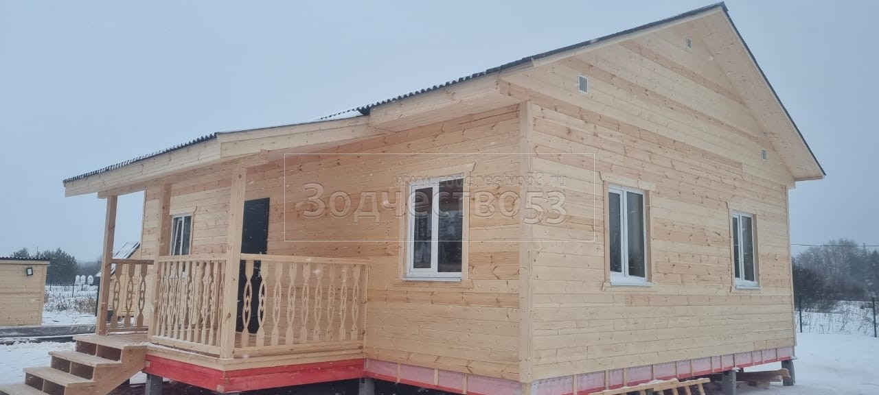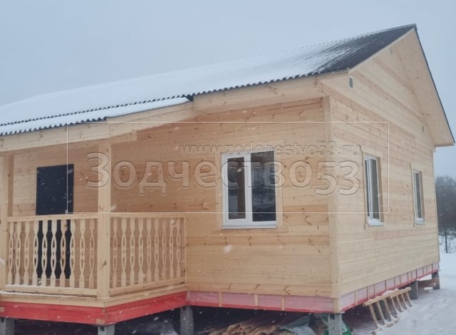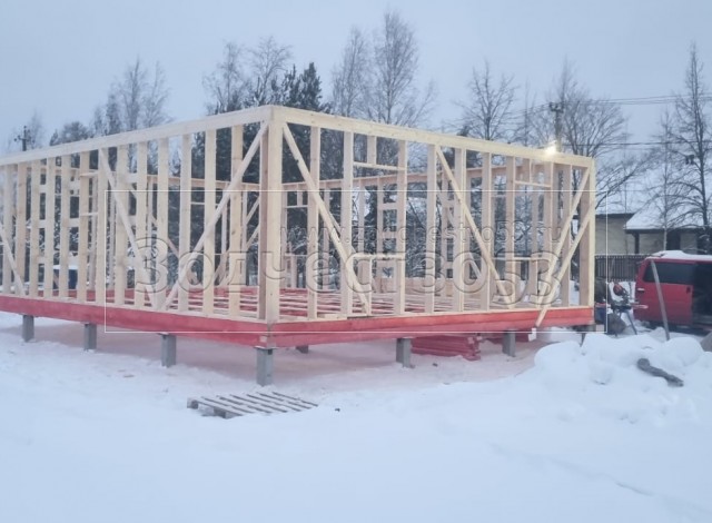 - Стены: каркасно-щитовые, каркас снаружи обшивается Имитацией бруса, а внутри стены обшиваются Вагонкой