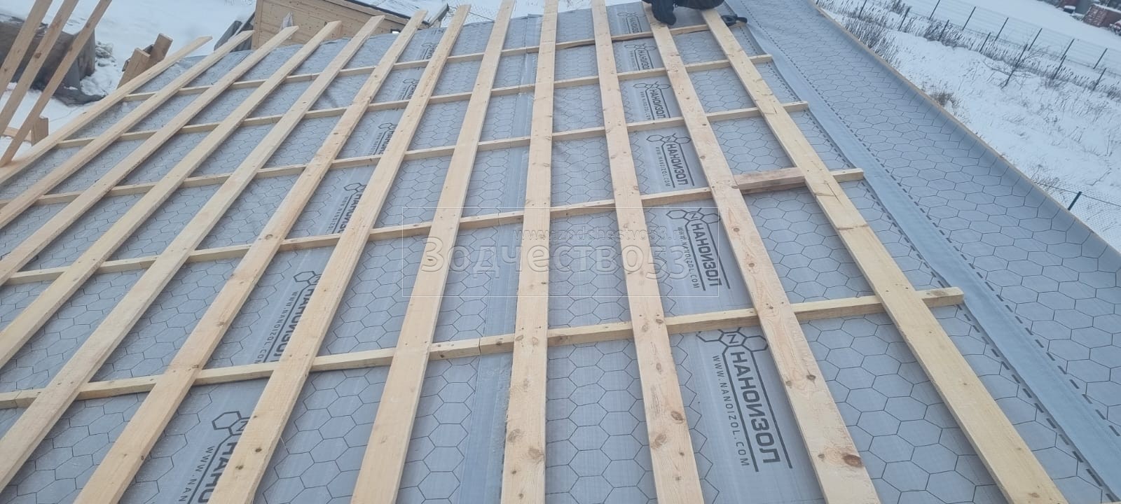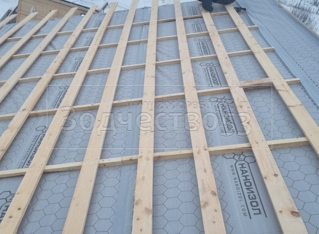 - Обрешетка крыши: обрезная доска