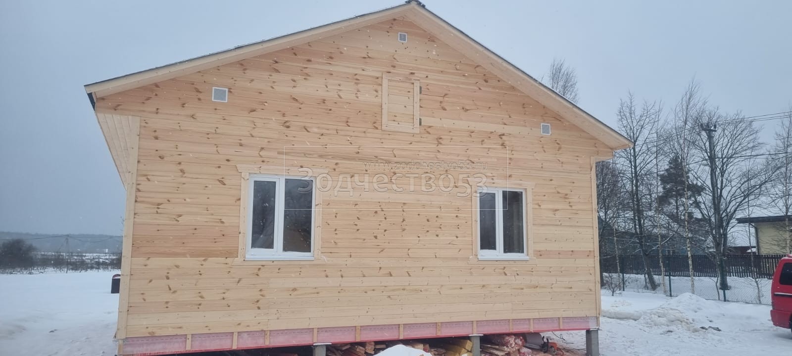 - Фронтоны на дому по 7.50 стороне: Каркасно-щитовые обшиваются Имитацией бруса