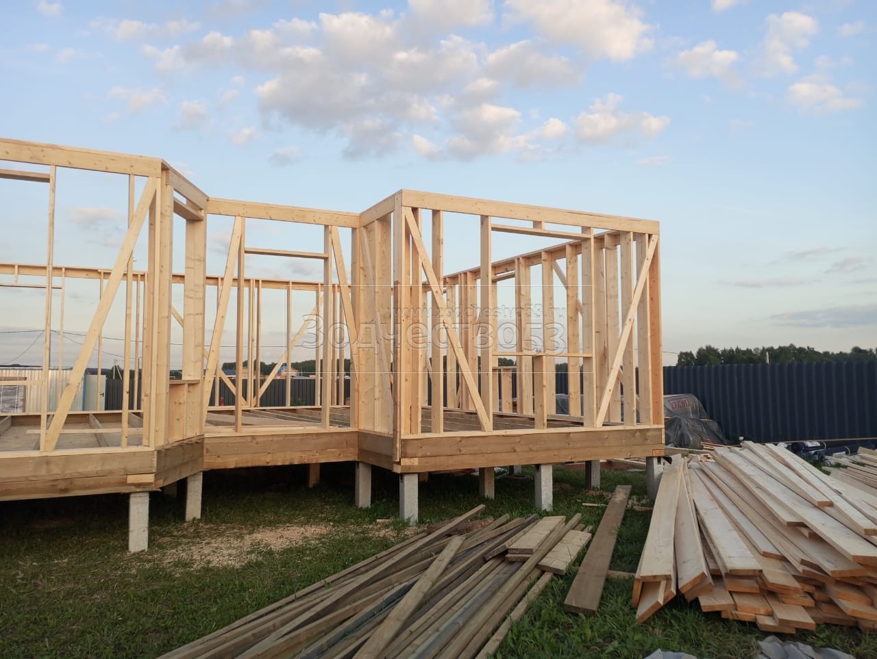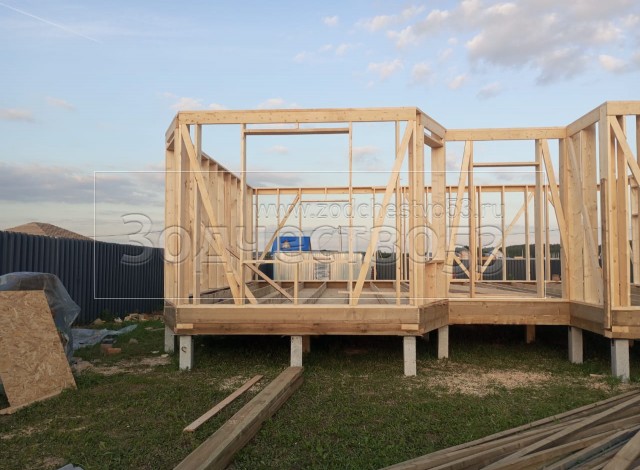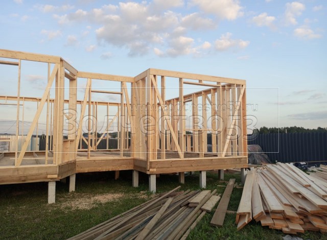 - Стены: каркасно-щитовые, снаружи обшивается Имитацией бруса, а внутри стены обшиваются сухой Вагонкой