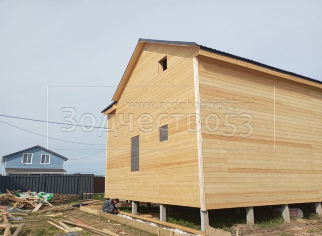 - Второй этаж: стены Каркасно-щитовые, с уличной стороны обшиваются Имитацией бруса, а внутри стены подшиваются Вагонкой