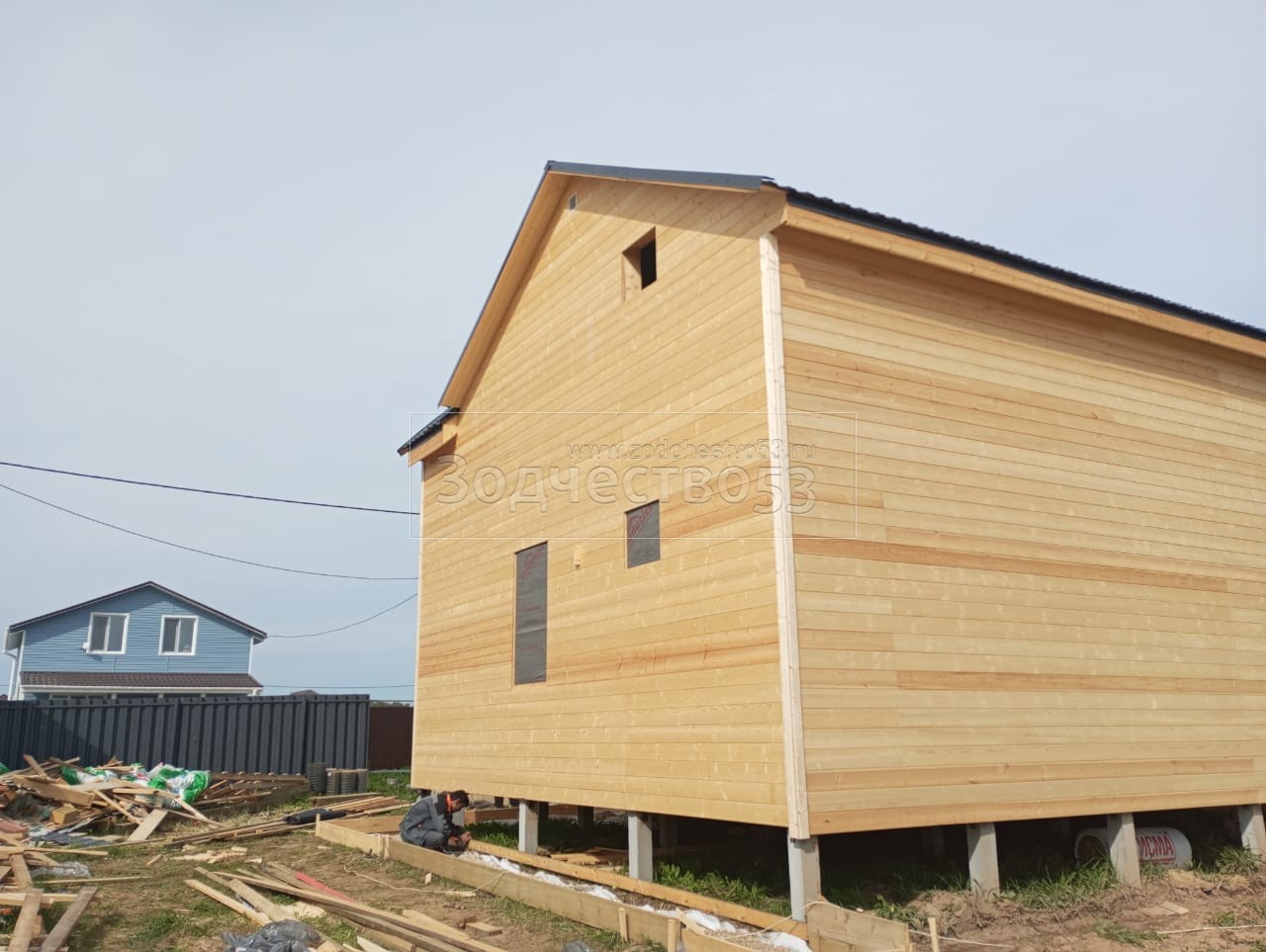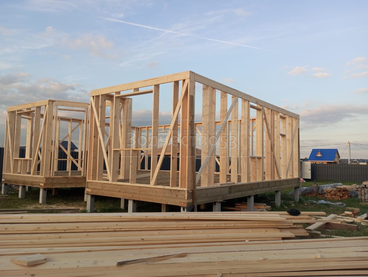 - Фронтоны на дому: каркасно-щитовые, обшиваются Имитацией бруса