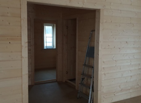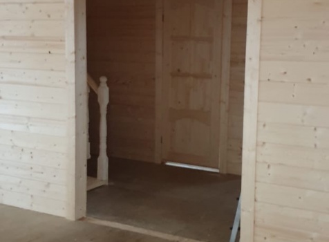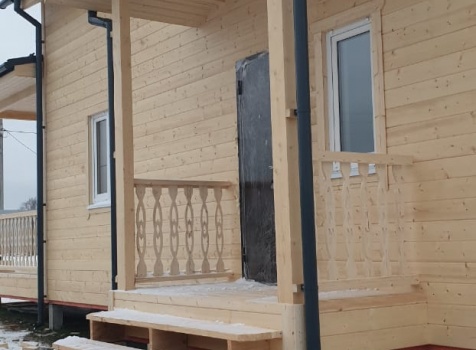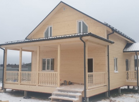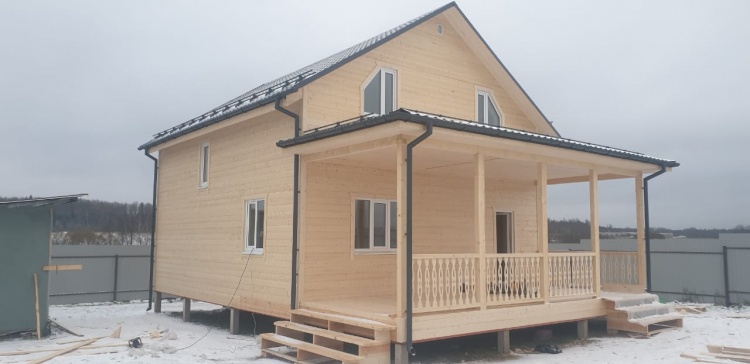 Постройка полутораэтажного дома с открытым крыльцом и открытой террасой общими размерами 11.50×8.70 ( 8.50×7.50 Дом ) каркасно-щитовой Камерной сушки с утеплением в 200 мм (стены) под двухскатной крышей плюс ( 2.50×1.20 открытое крыльцо ) под отдельной двухскатной крышей и ( 3.0×7.50 открытая терраса ) под отдельной односкатной крышей ( с вальмами лучами ).