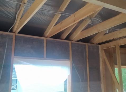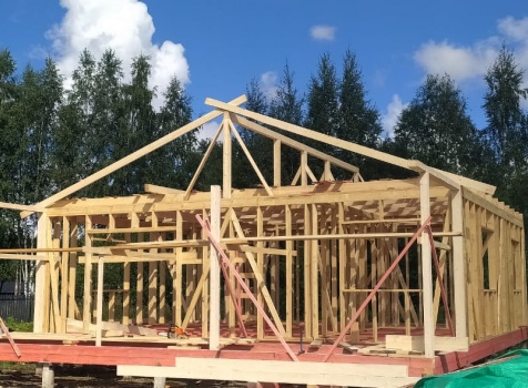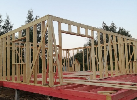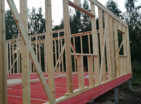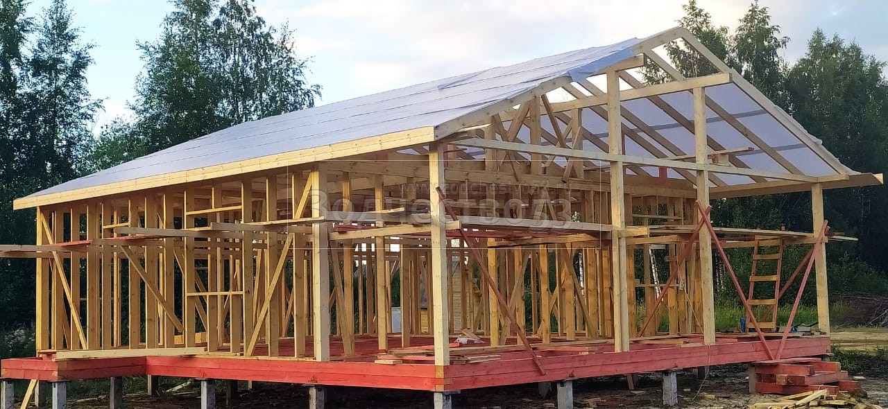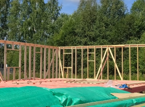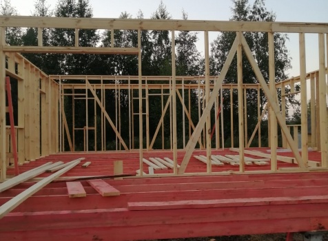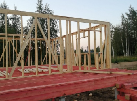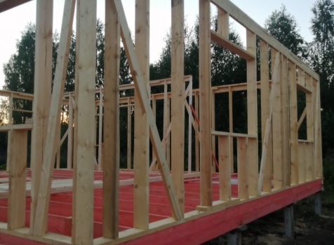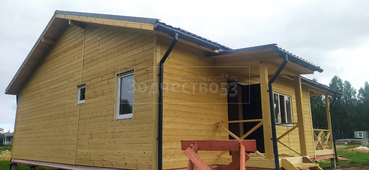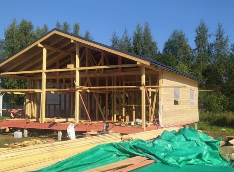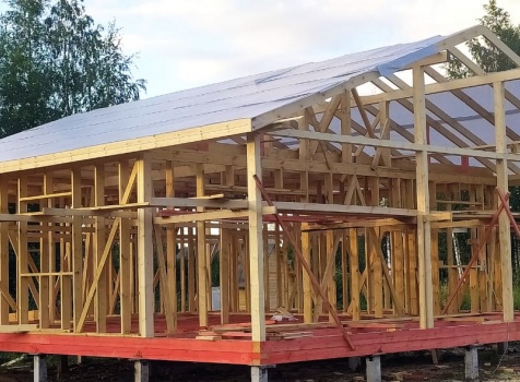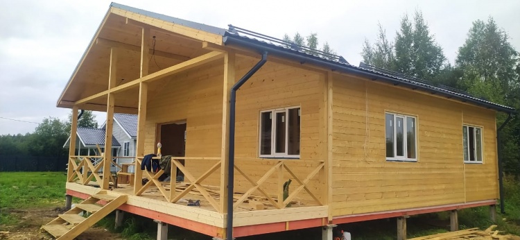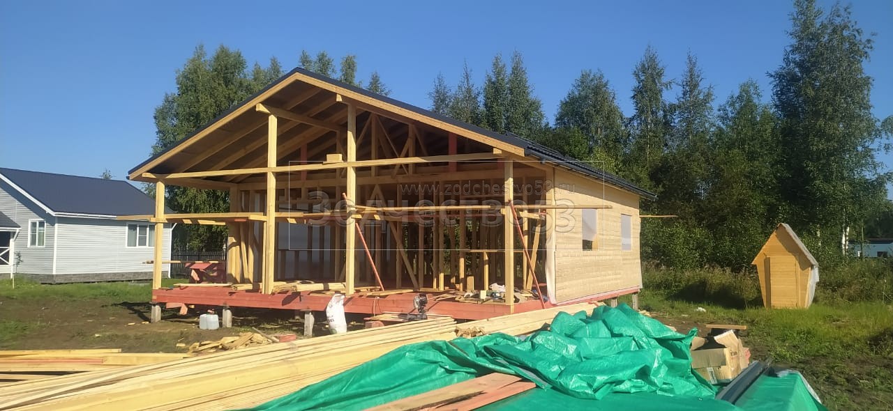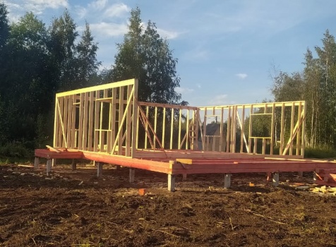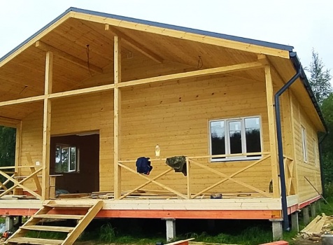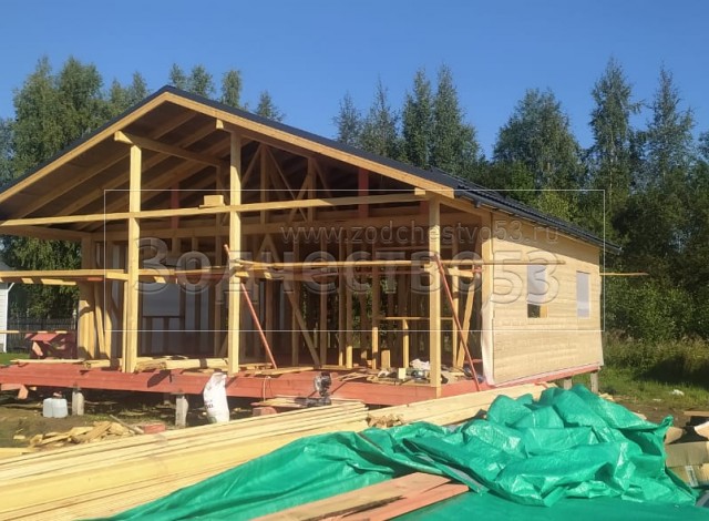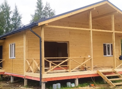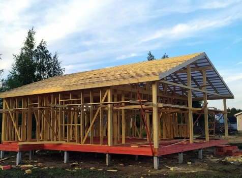 Постройка одноэтажного жилого дома общими размерами 11.0×11.0 (9.50×8.50 каркасно-щитовой) и открытая терраса 9.50×2.50 под общей двухскатной крышей) и крыльцо 1.5×2.0 под отдельной односкатной крышей.