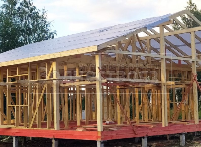 - Фронтоны: Каркасно-щитовые обшиваются Имитацией бруса