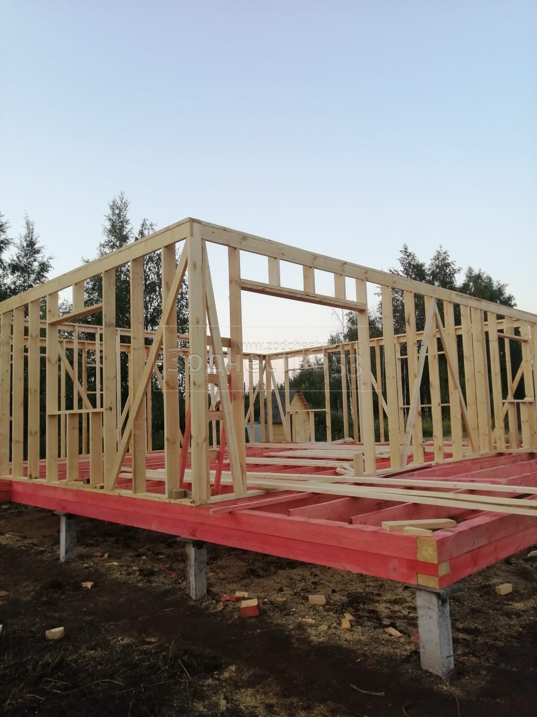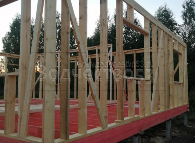 - Стены: каркасно-щитовые ,снаружи обшивается Имитацией бруса