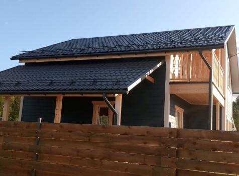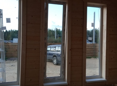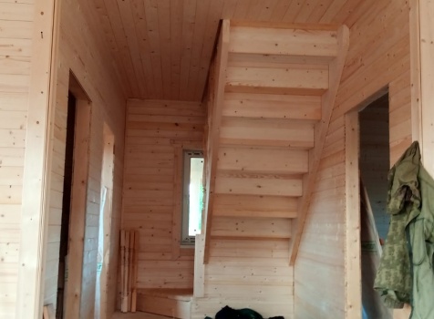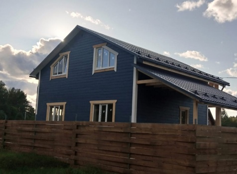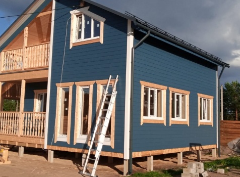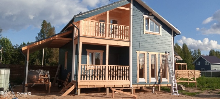 Постройка полутораэтажного дома с навесом общими размерами 11.0×8.0 ( 8.0×8.0 дом ) каркасно-щитовой (Камерной сушки) с утеплением в 200 мм (стены) под двухскатной крышей и ( 3.0×6.0 навес ) под отдельной односкатной крышей .