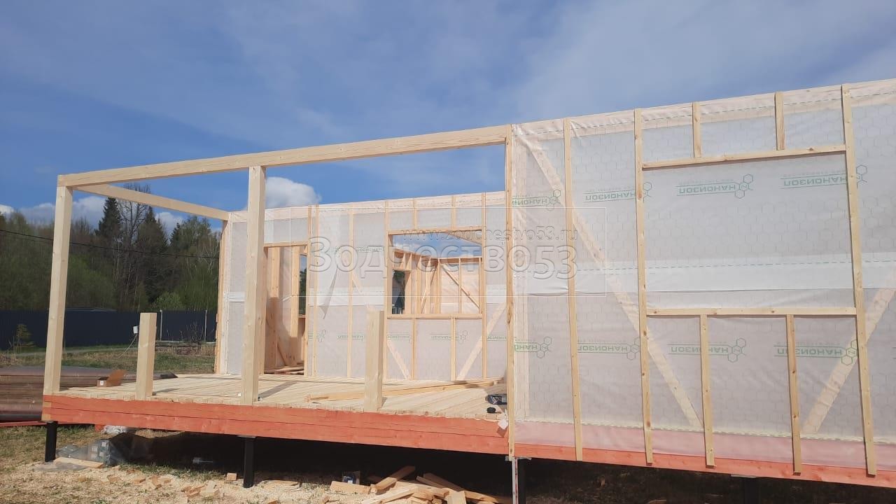 - Стены: каркасно-щитовые, каркас снаружи и внутри обшивается Имитацией бруса