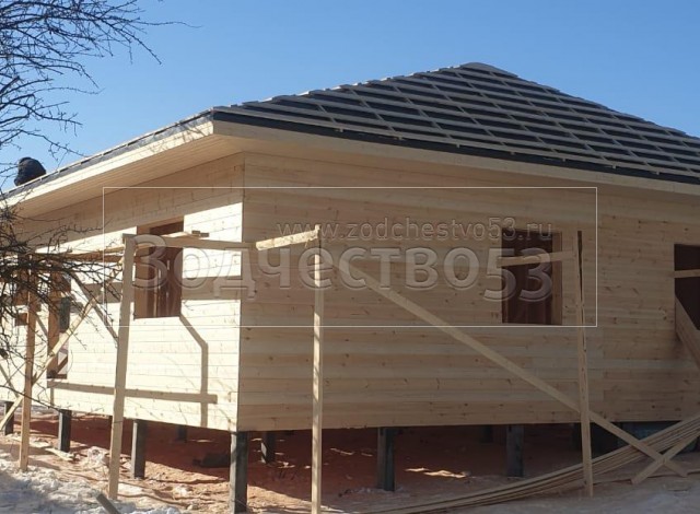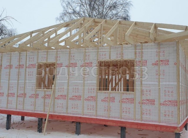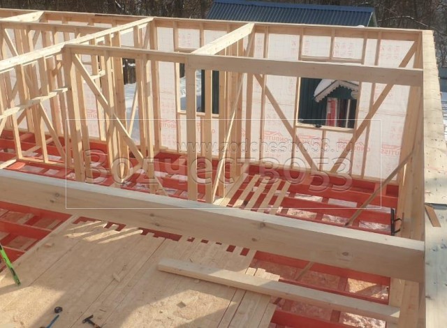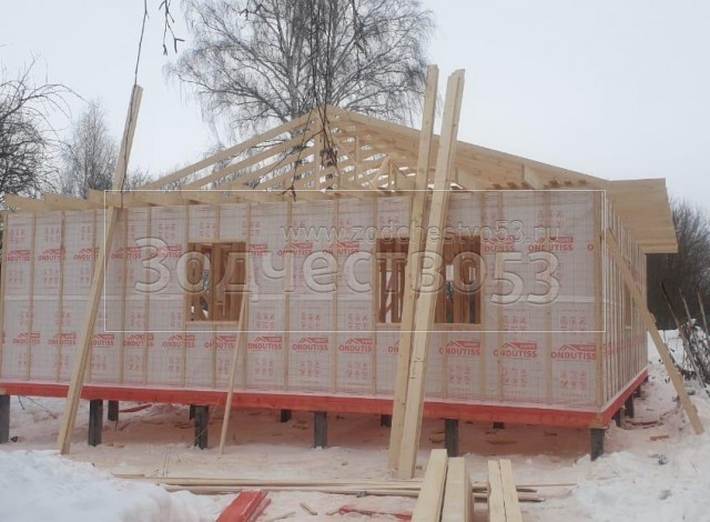 Постройка одноэтажного дома, общими размерами 12.0×10.0 каркасный (Камерной сушки) с утеплением в 150 мм (стены) под четырёхскатной крышей ( тип конвертом ) .