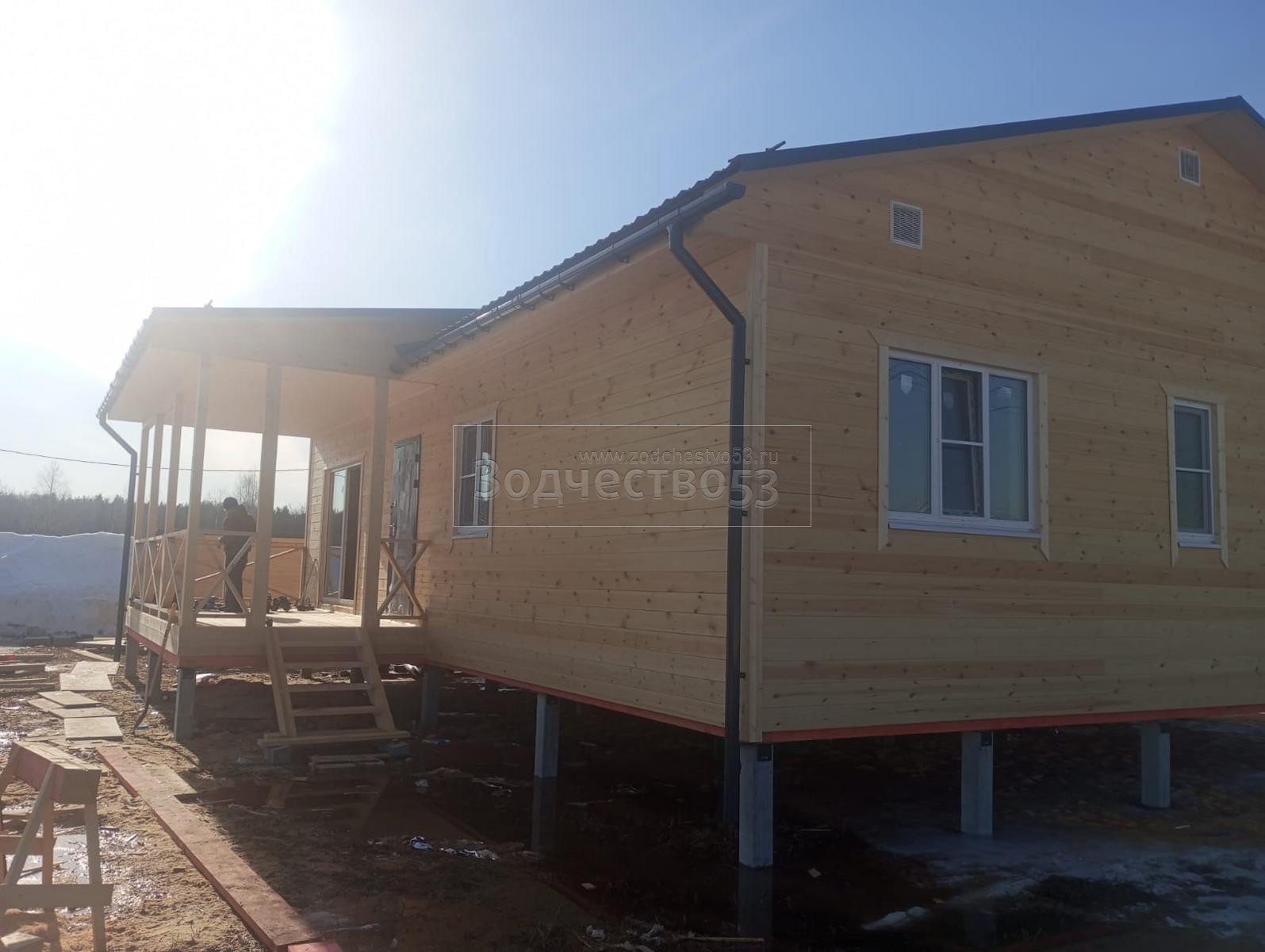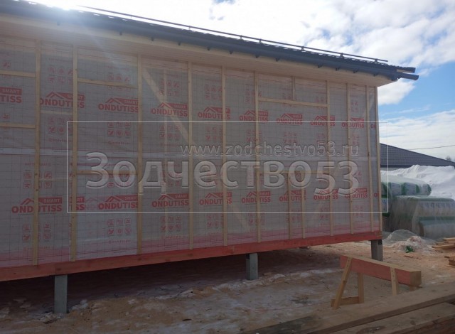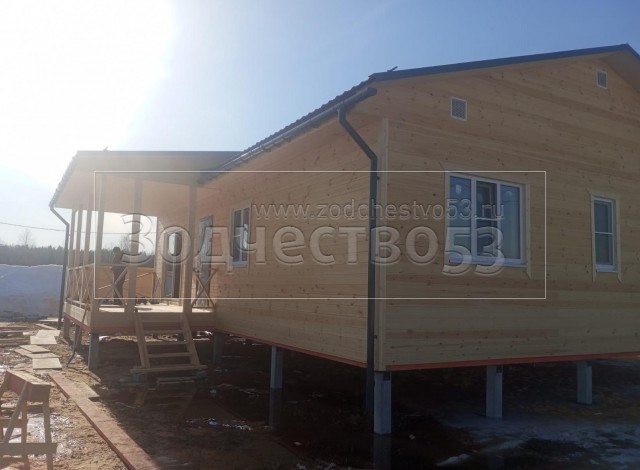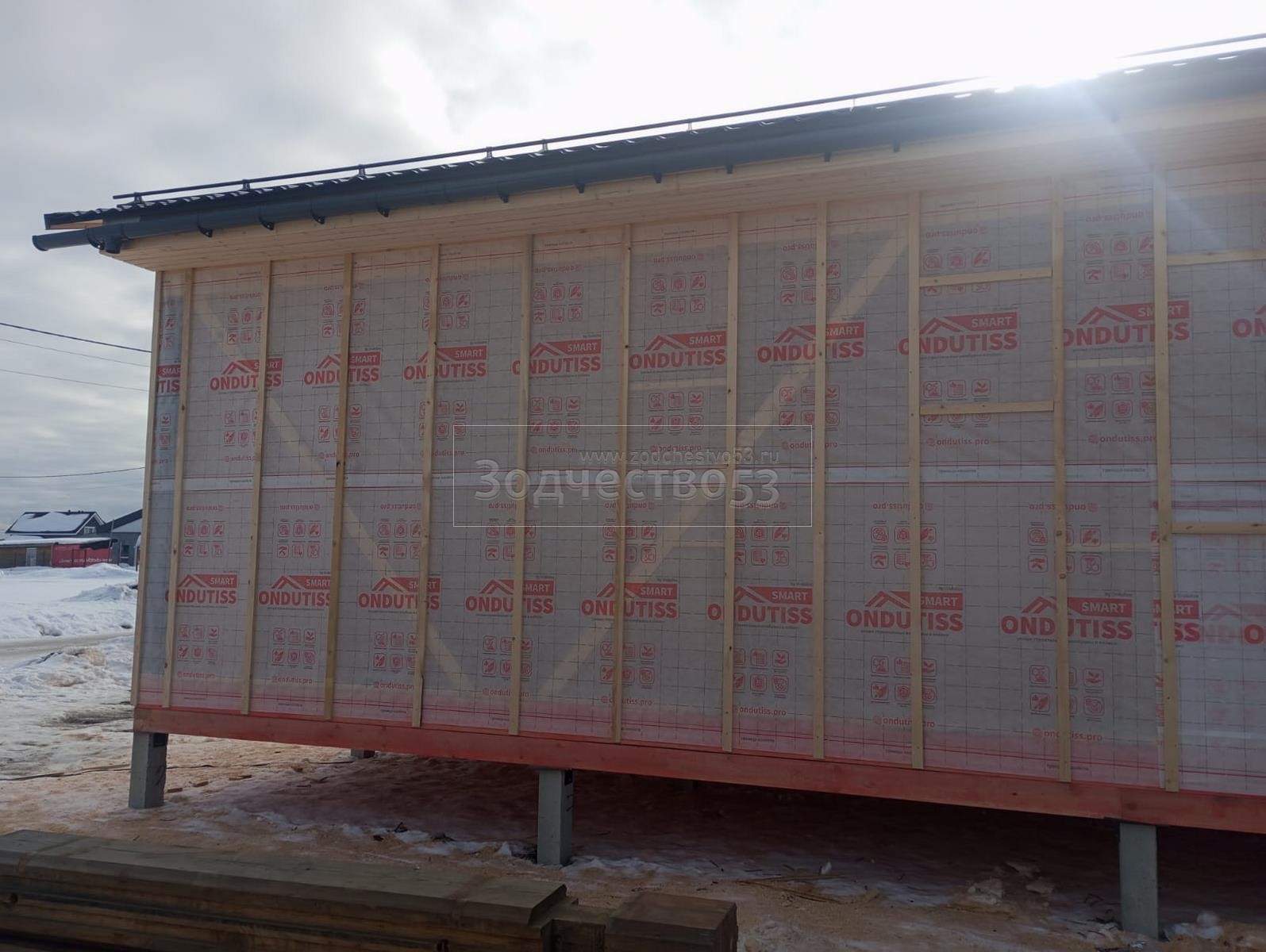 Постройка одноэтажного дома с открытой террасой общими размерами 12.0×11.50 ( 12.0×9.0 дом )каркасный (Камерной сушки) с утеплением в 200 мм (стены) под двухскатной крышей и ( 6.0×2.50 открытая терраса ) под отдельной односкатной крышей по проекту: https://zodchestvo53.ru/kseniya