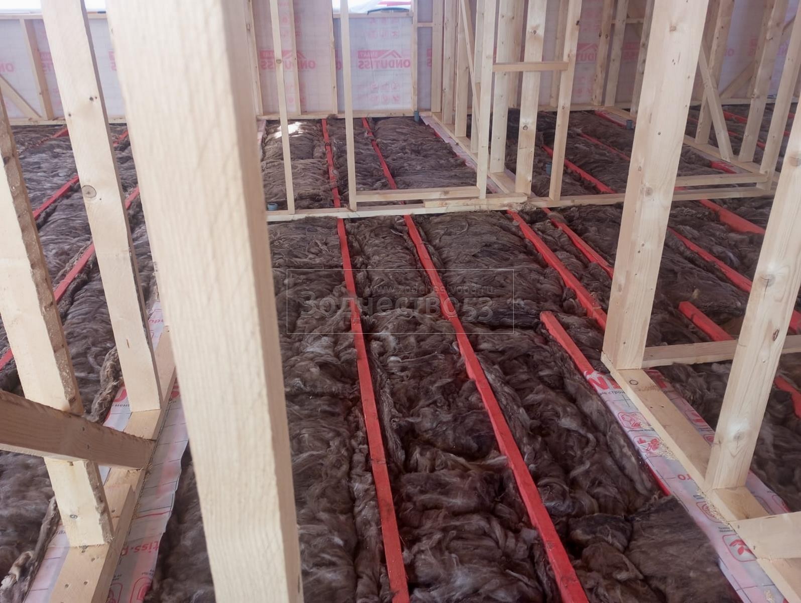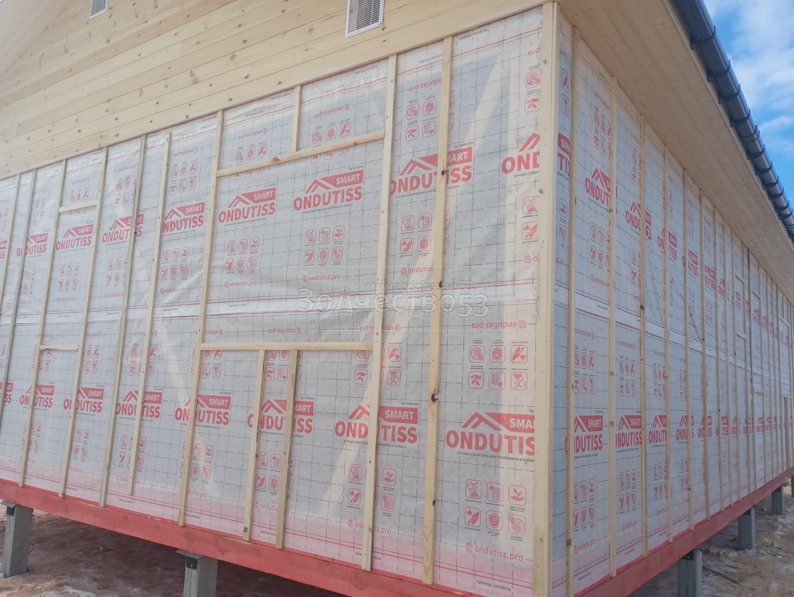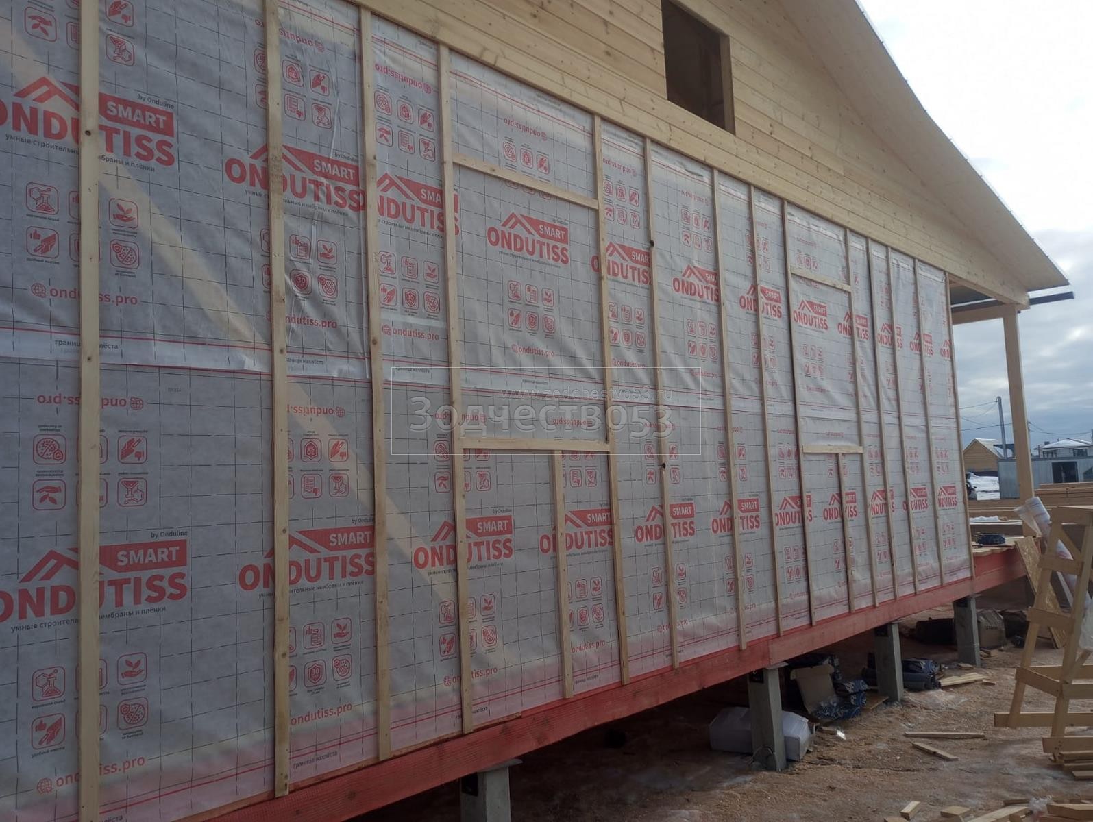 Постройка одноэтажного дома с открытой террасой общими размерами 12.0×11.50 ( 12.0×9.0 дом )каркасный (Камерной сушки) с утеплением в 200 мм (стены) под двухскатной крышей и ( 6.0×2.50 открытая терраса ) под отдельной односкатной крышей по проекту: https://zodchestvo53.ru/kseniya